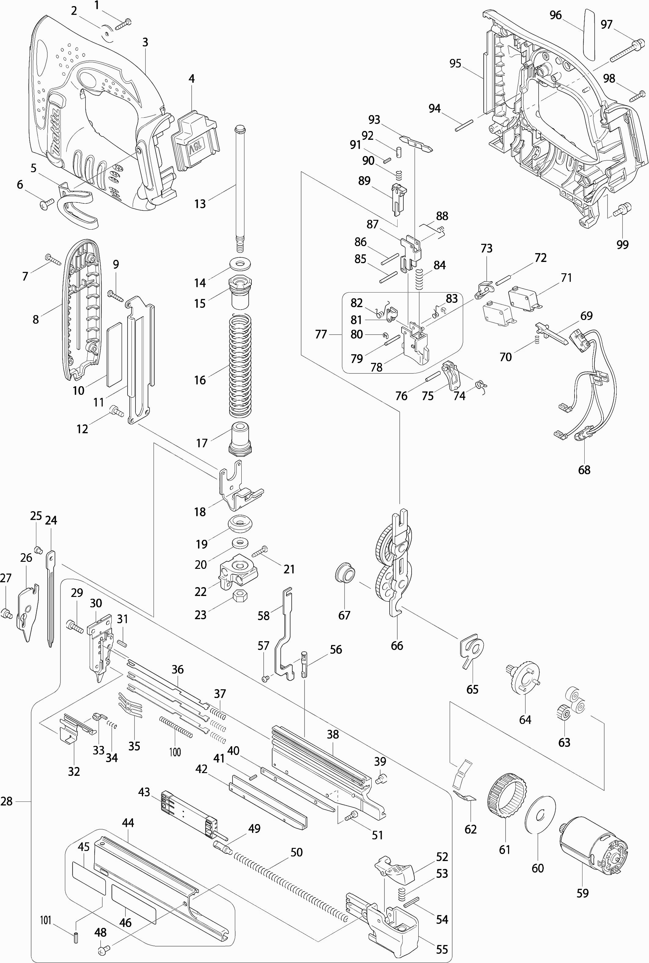 Lista de las piezas de repuesto de Makita DPT351