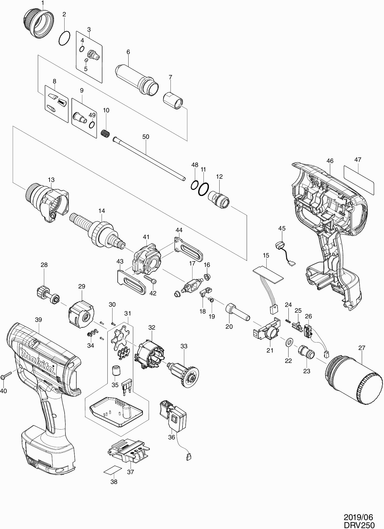Dibujo técnico de los/las Makita DRV250