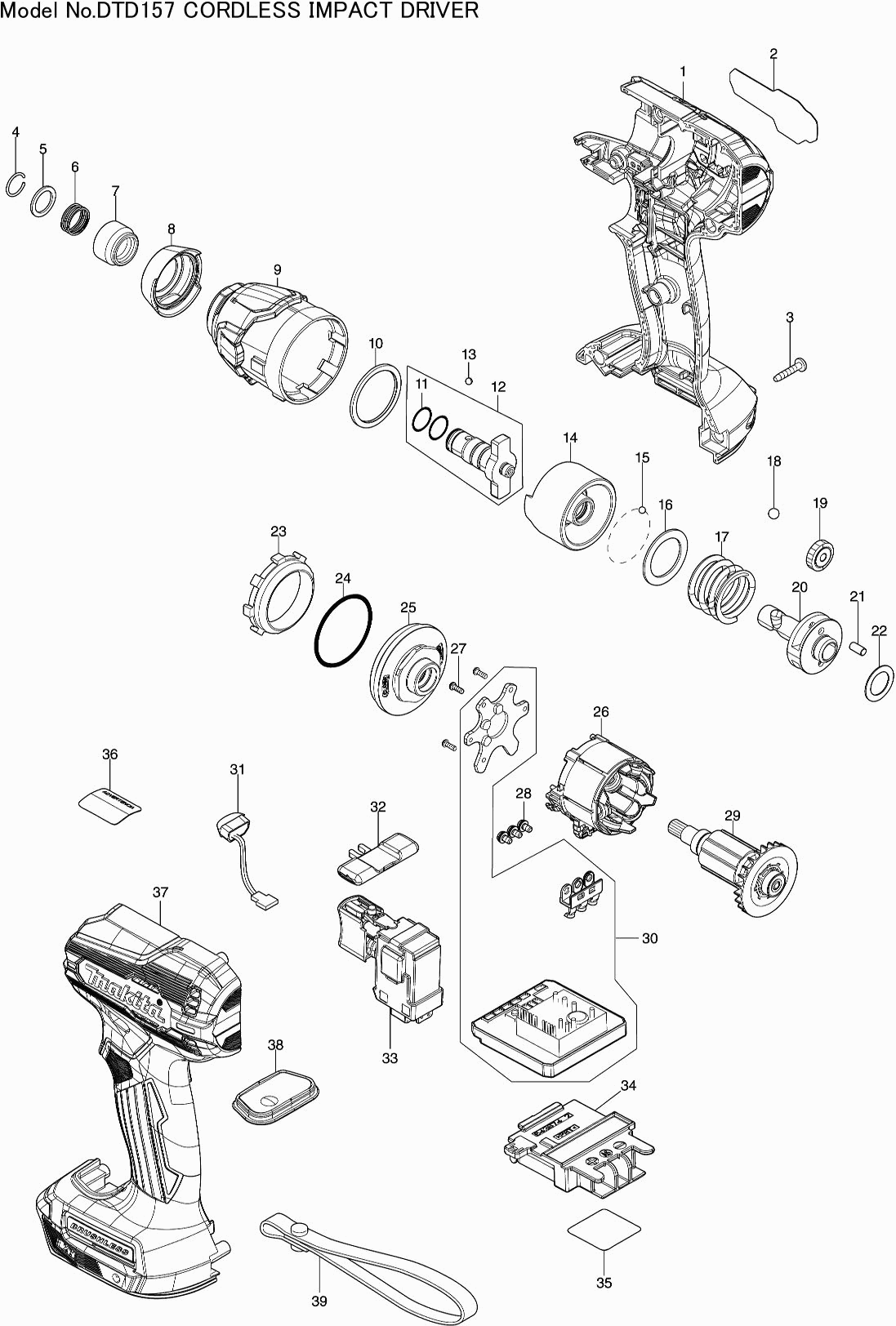 Lista de las piezas de repuesto de Makita DTD157