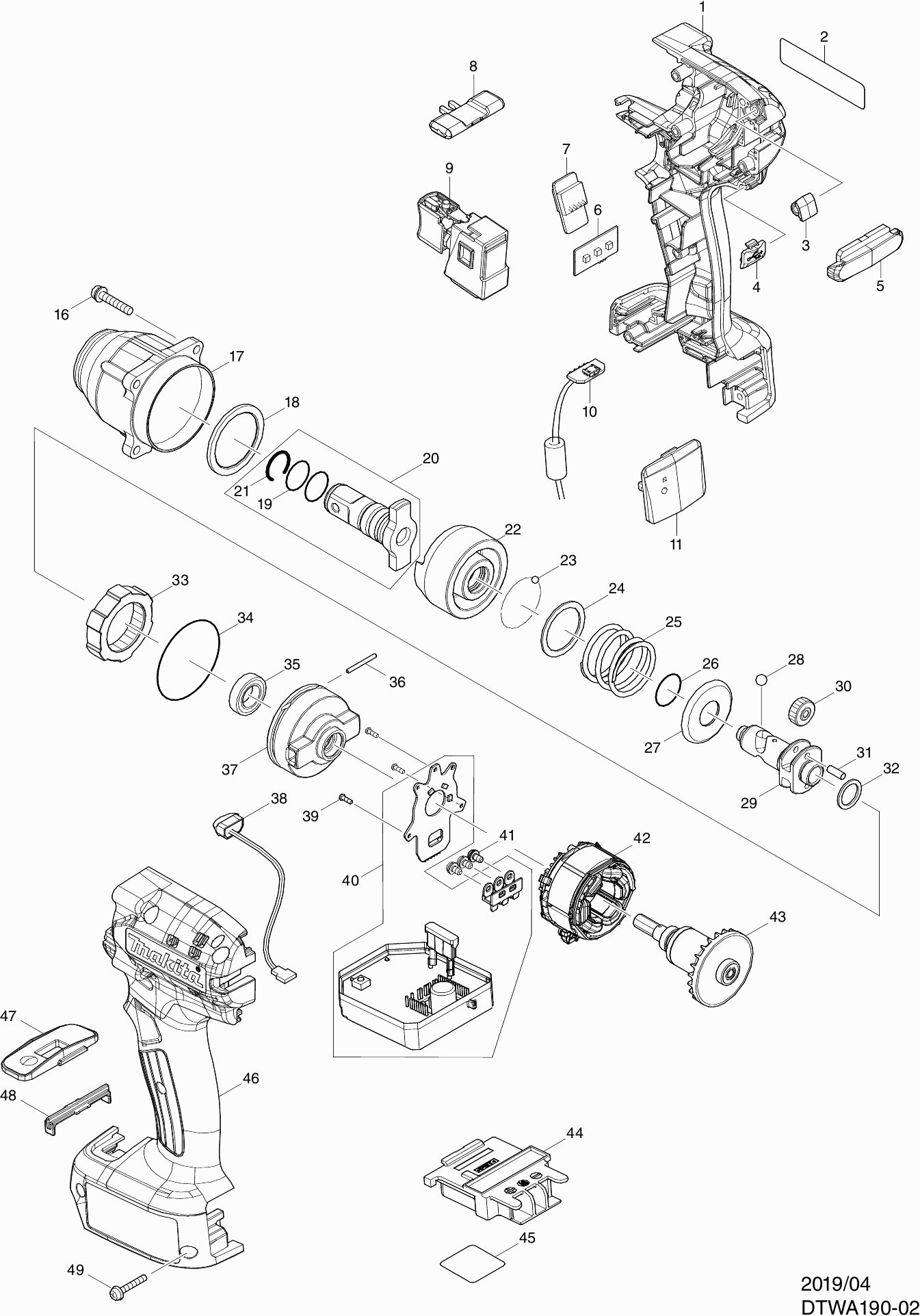 Lista de las piezas de repuesto de Makita DTWA190