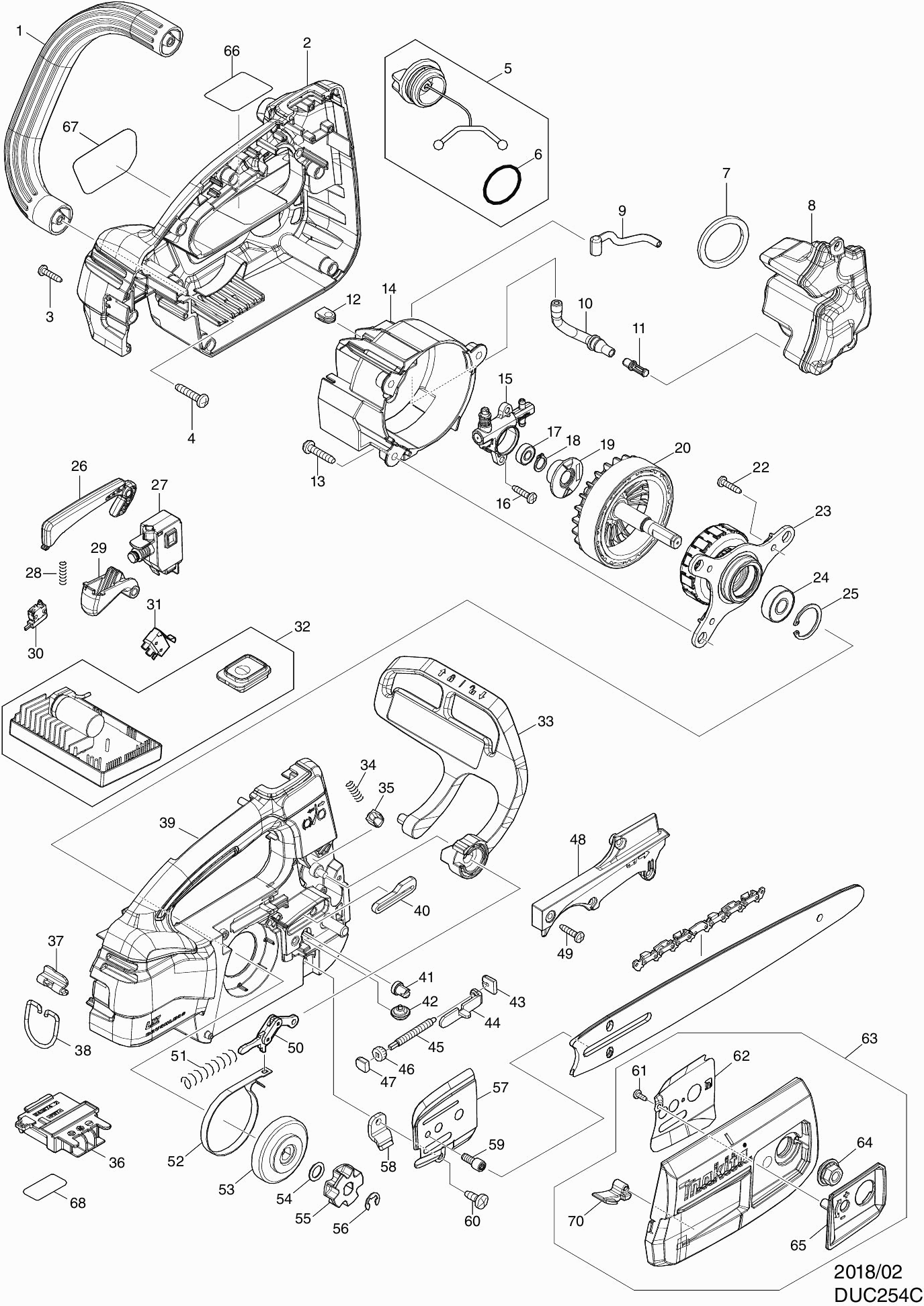 Lista de las piezas de repuesto de Makita DUC254C