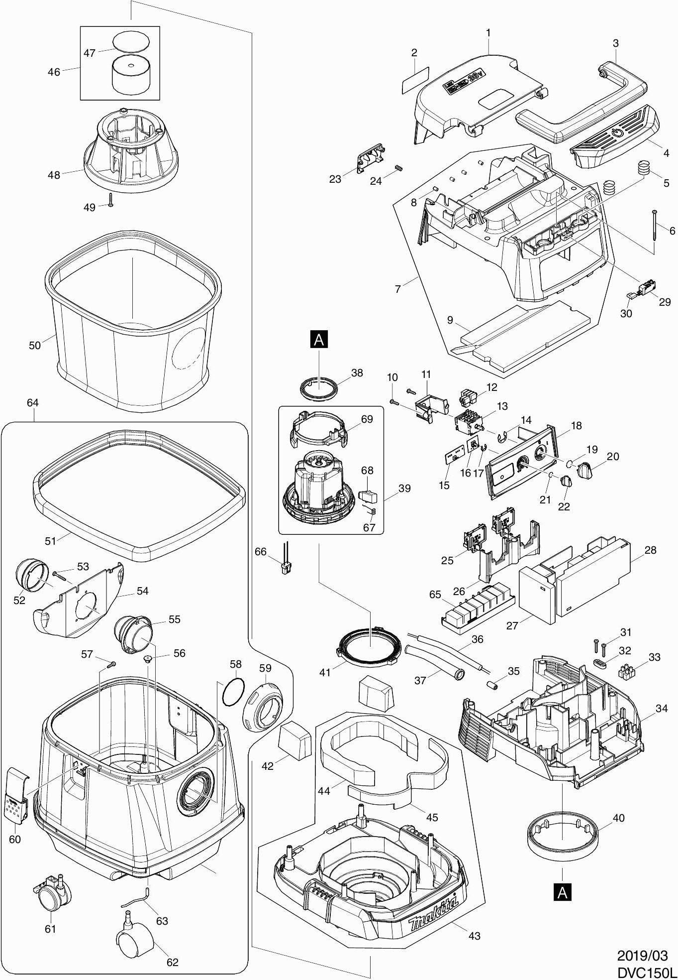 Lista de las piezas de repuesto de Makita DVC150L
