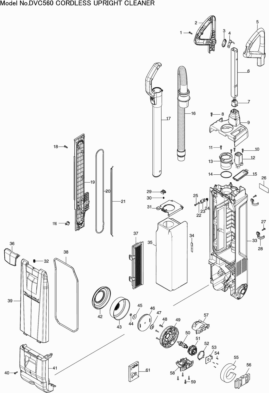 Lista de las piezas de repuesto de Makita DVC560