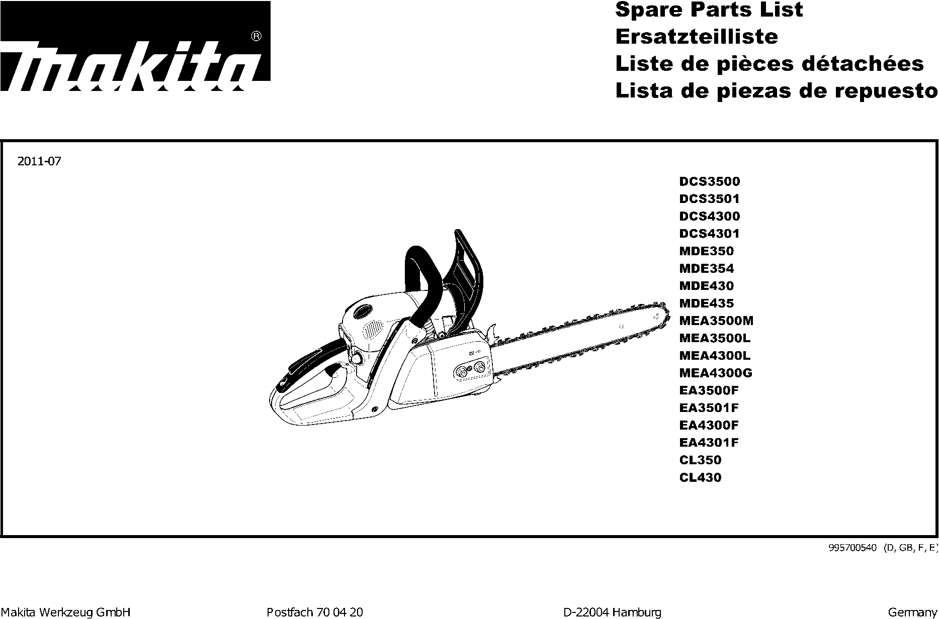 Lista de las piezas de repuesto de Makita EA4300F
