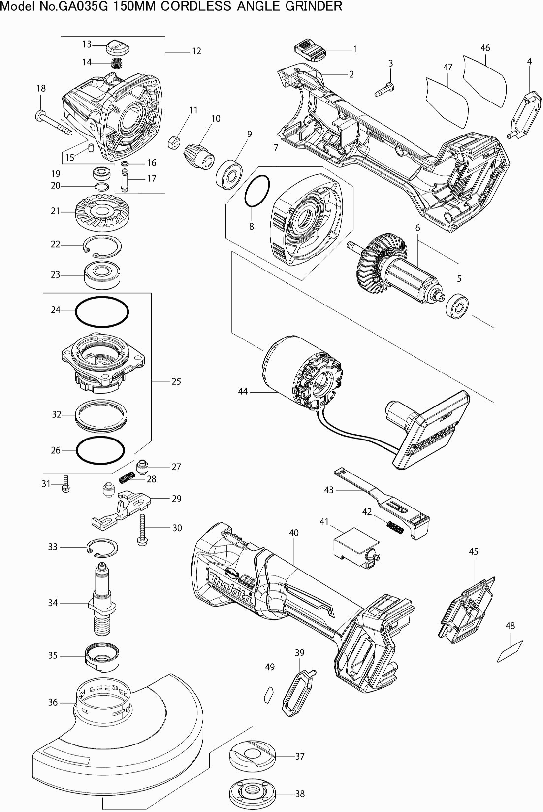 Dibujo técnico de los/las Makita GA035G