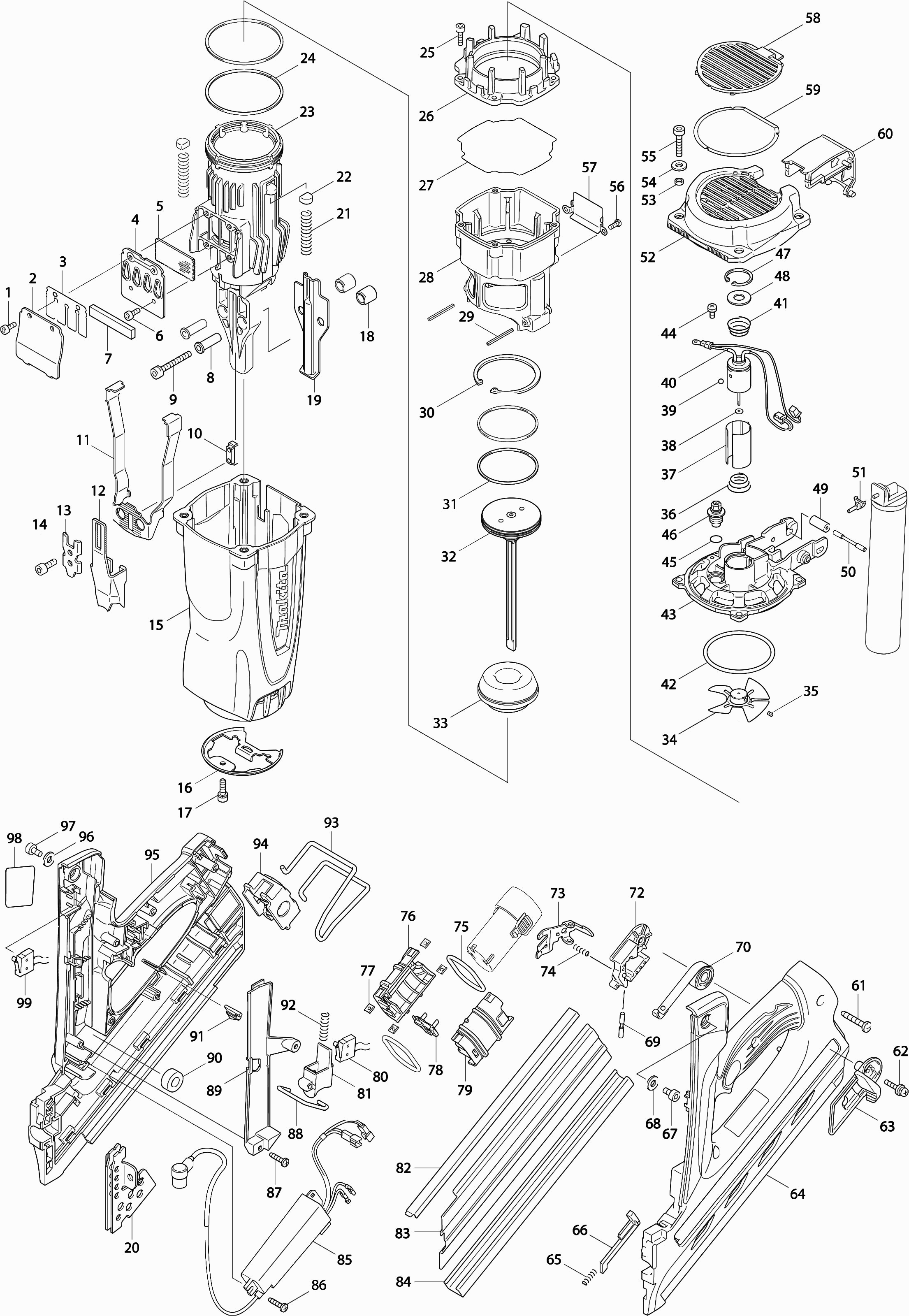 Aquí encontrará todas las piezas y dibujos técnicos disponibles de 'Makita GN900'. Desde aquí podrá pedir todas las piezas deseadas directamente. Para muchas piezas de repuesto, es necesario pasar un pedido al fabricante. Dependiendo de la marca, el plazo de entrega puede variar entre una y cuatro semanas. Toda la información que tenemos está en nuestro sitio web. No podremos aconsejarle sobre lo que necesita hasta que entregue la máquina para su reparación. Tenga en cuenta lo siguiente a la hora de cursar su pedido: