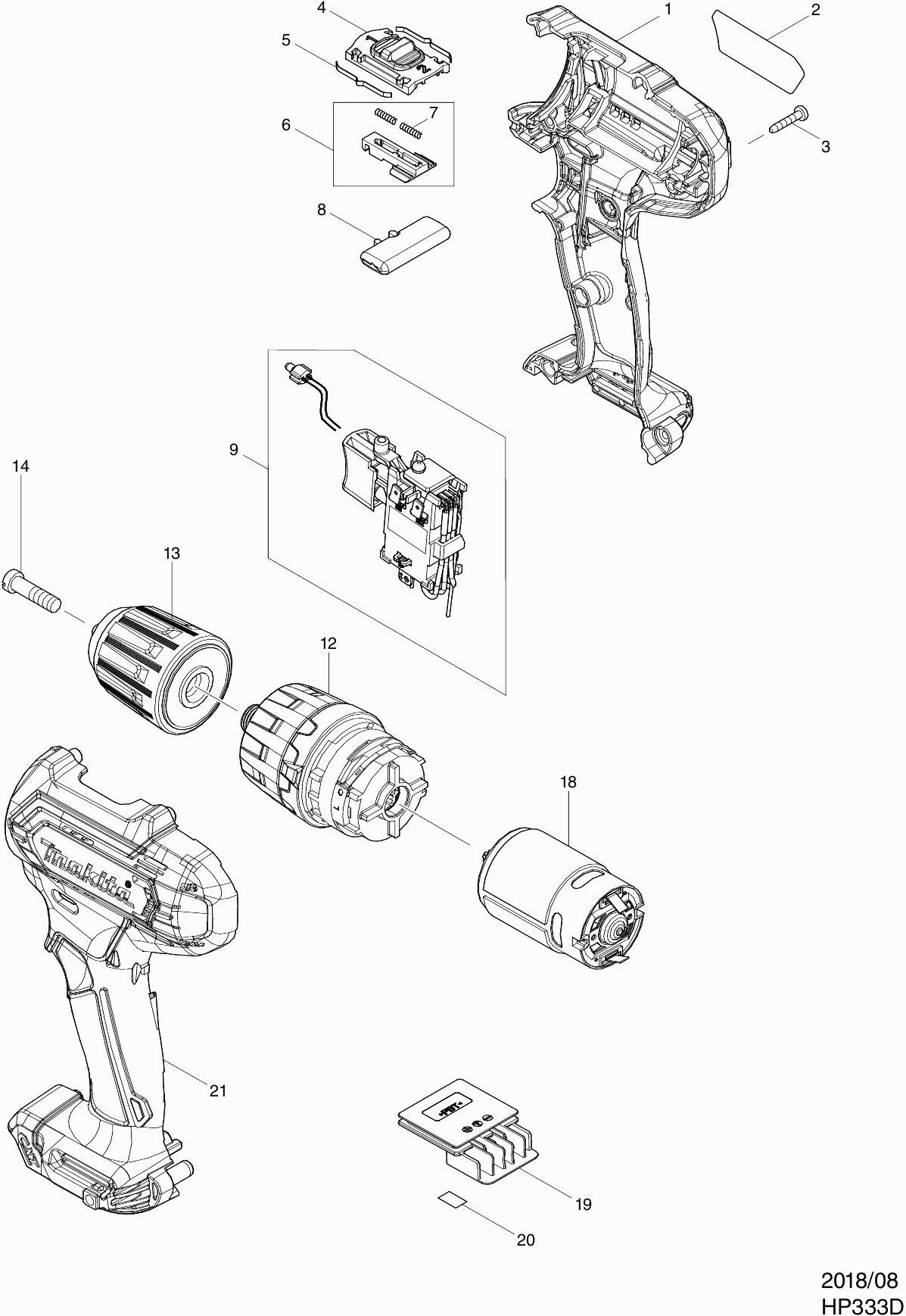 Lista de las piezas de repuesto de Makita HP333D