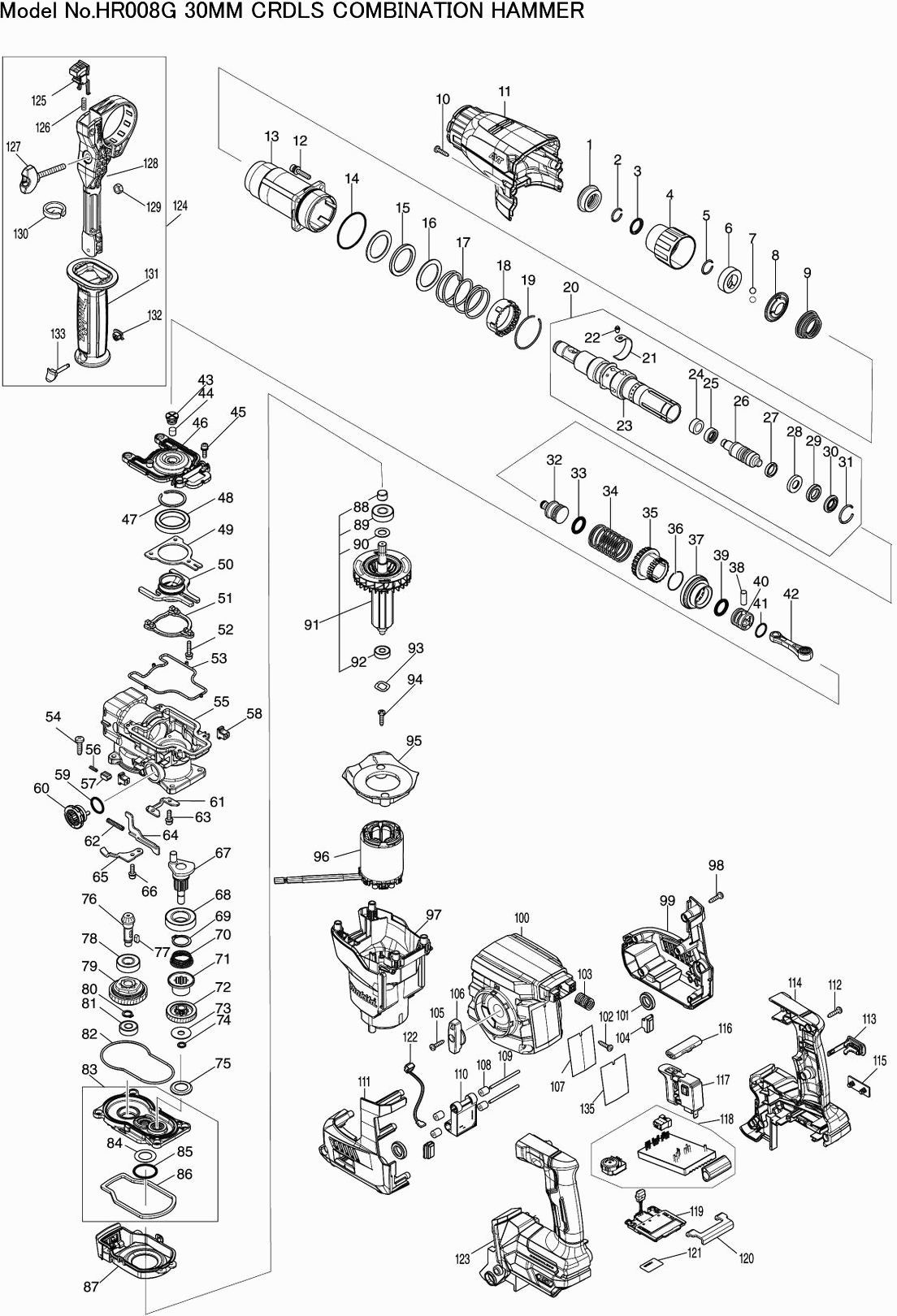 Dibujo técnico de los/las Makita HR008G
