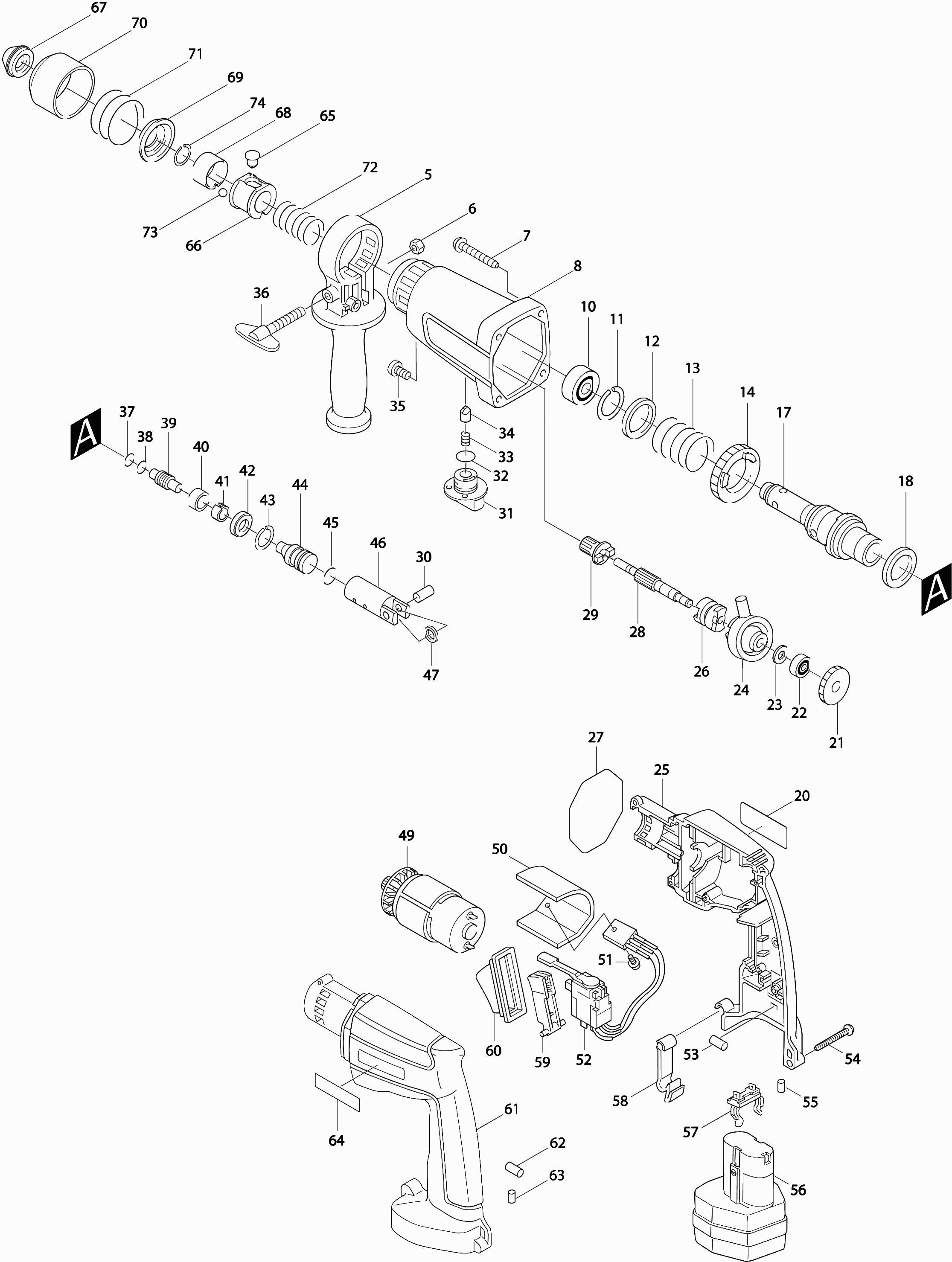 Dibujo técnico de los/las Makita HR160D