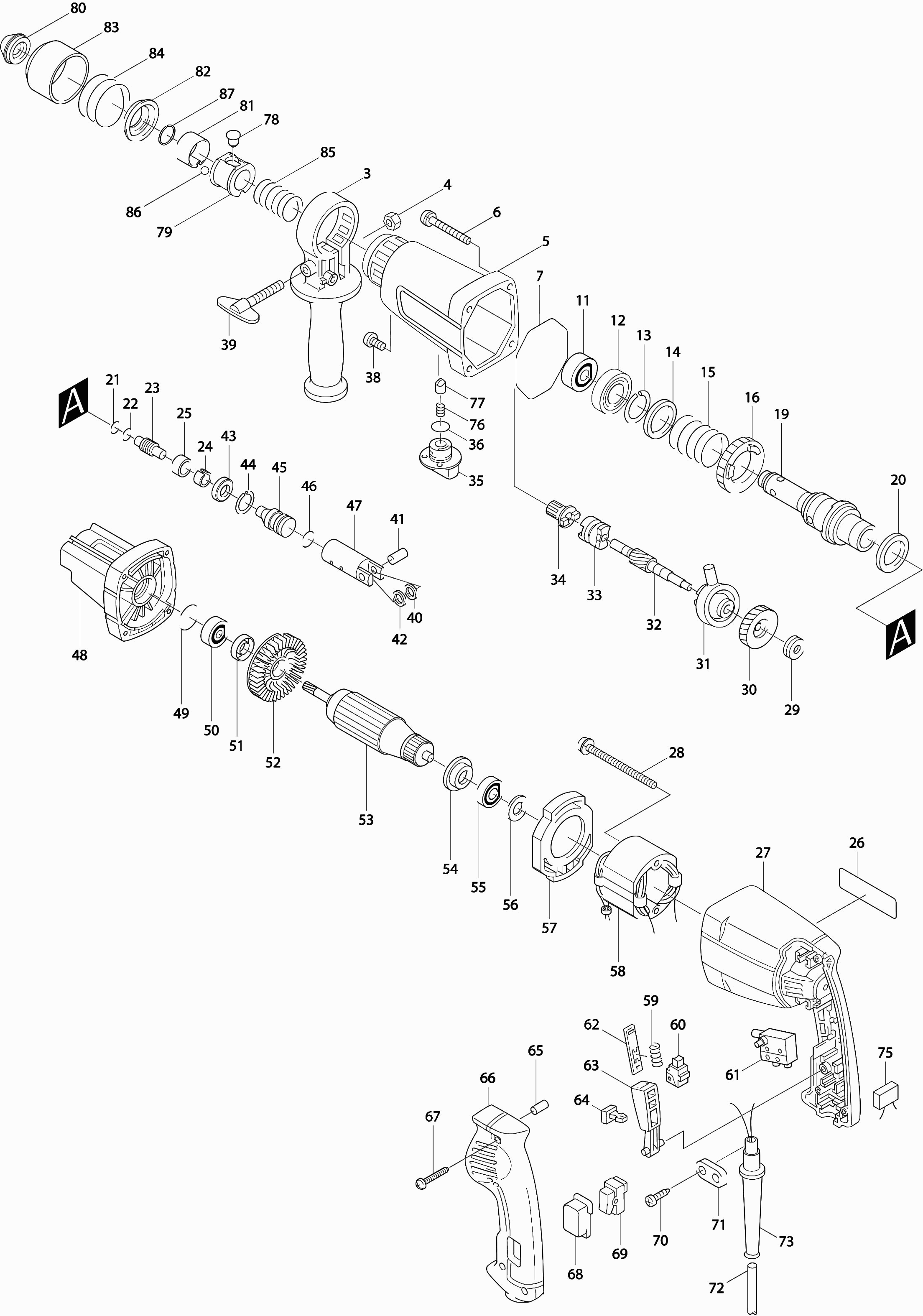 Dibujo técnico de los/las Makita HR2400