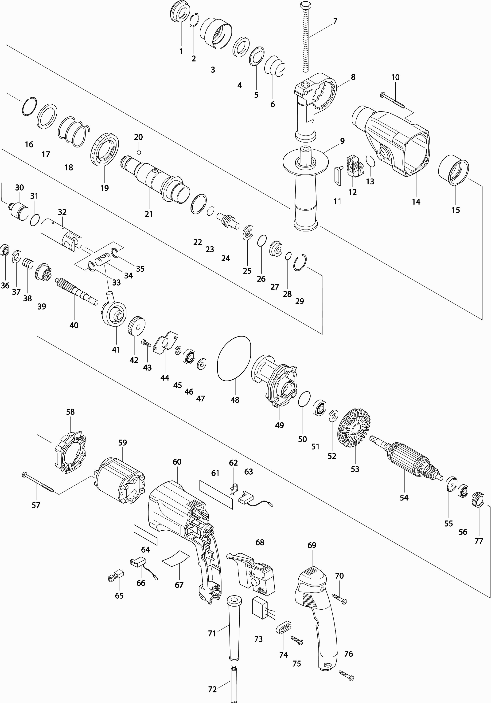 Dibujo técnico de los/las Makita HR2440