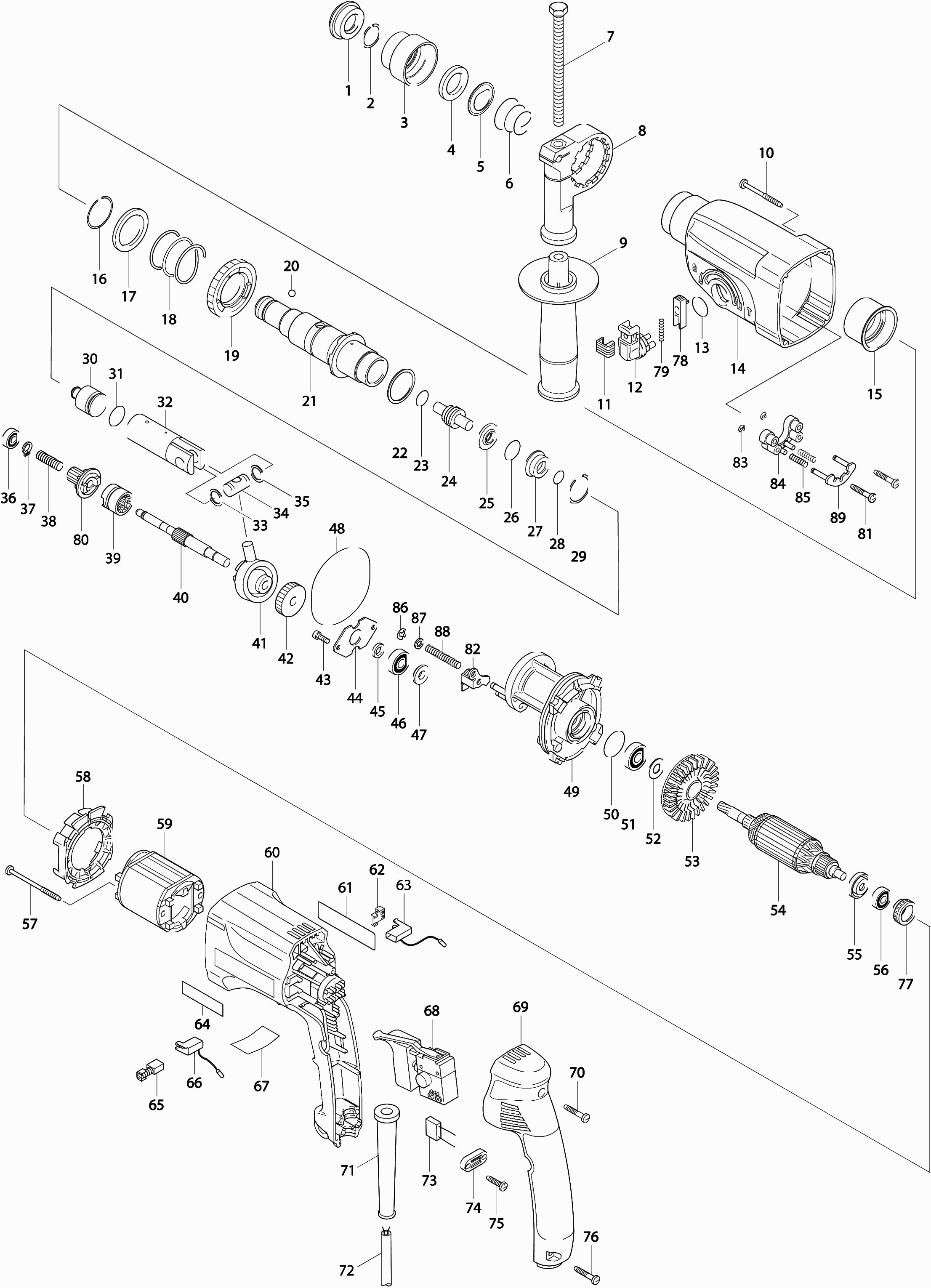 Dibujo técnico de los/las Makita HR2450