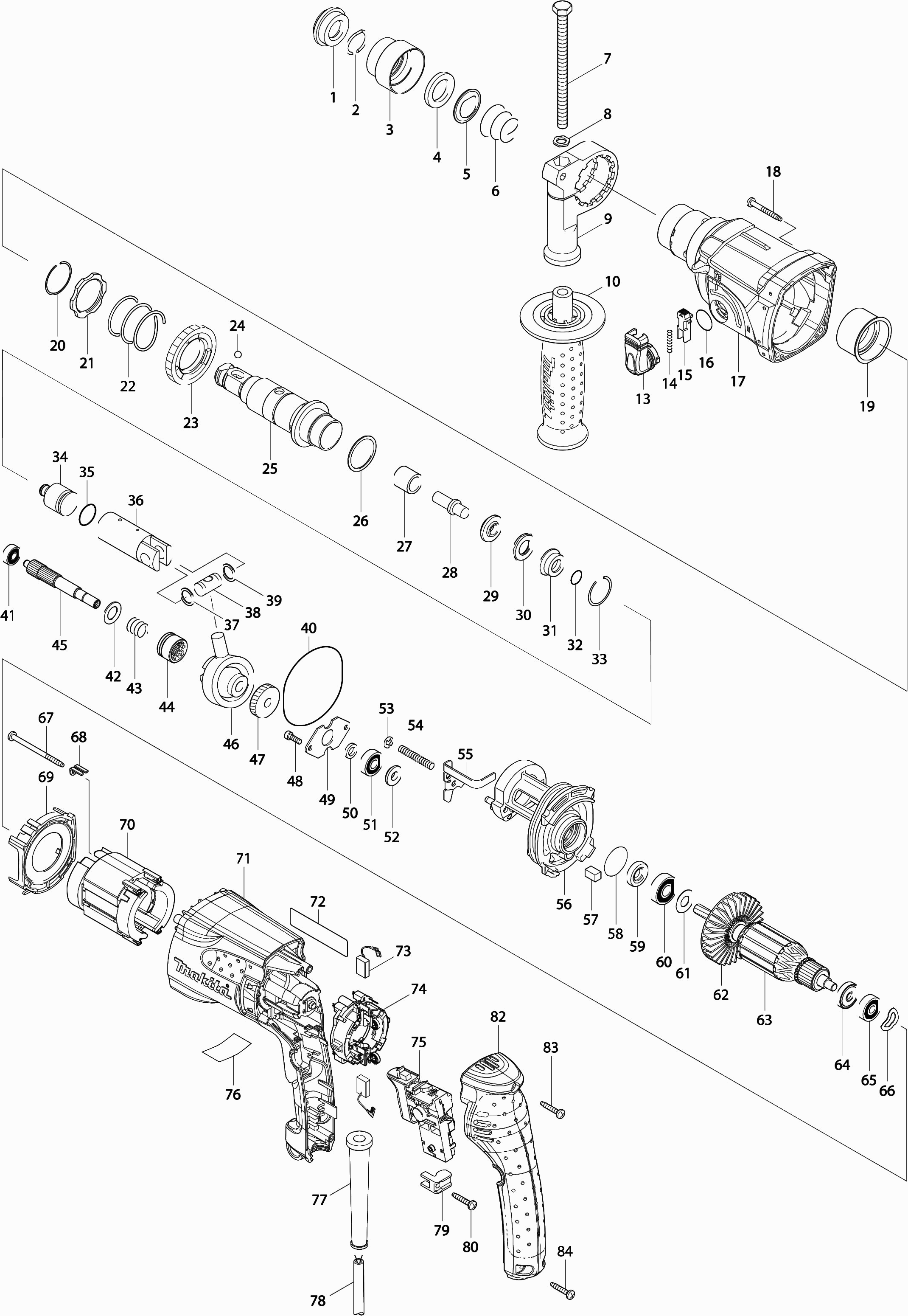 Dibujo técnico de los/las Makita HR2460