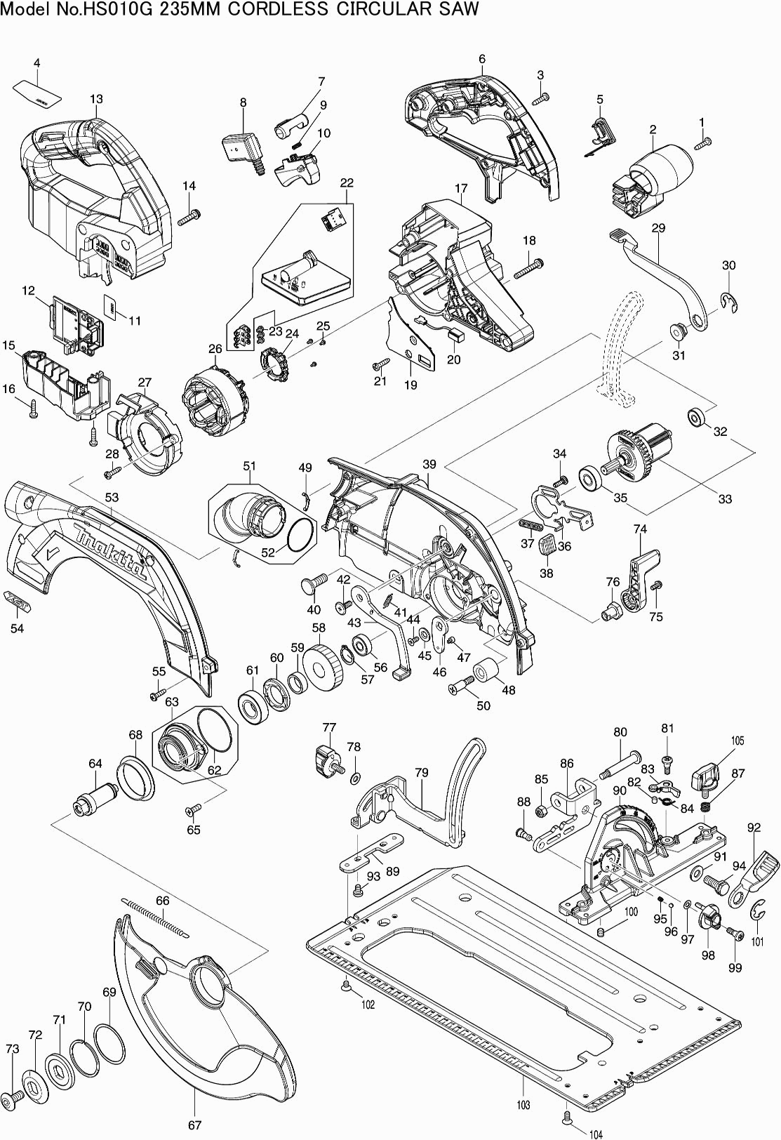 Lista de las piezas de repuesto de Makita HS010GZ