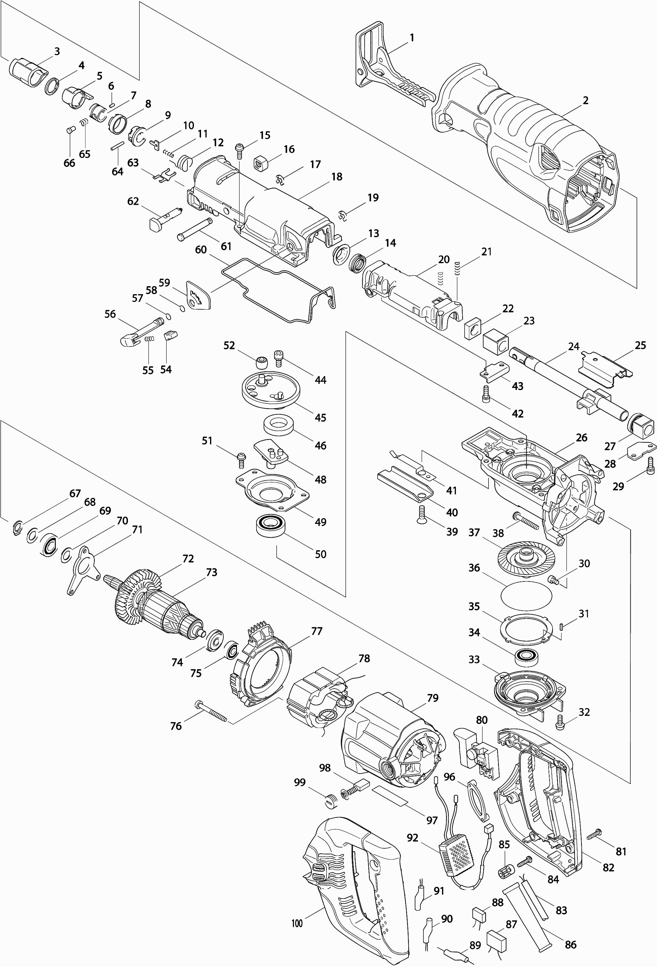 Lista de las piezas de repuesto de Makita JR3060T