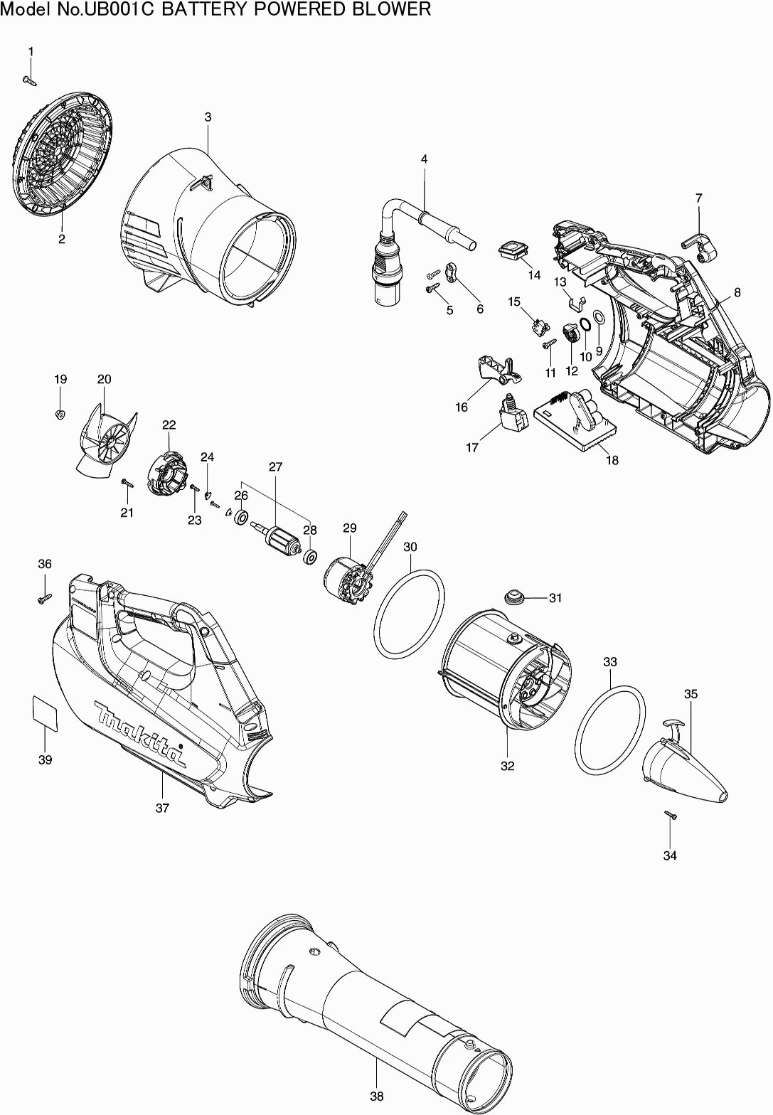Lista de las piezas de repuesto de Makita UB001C