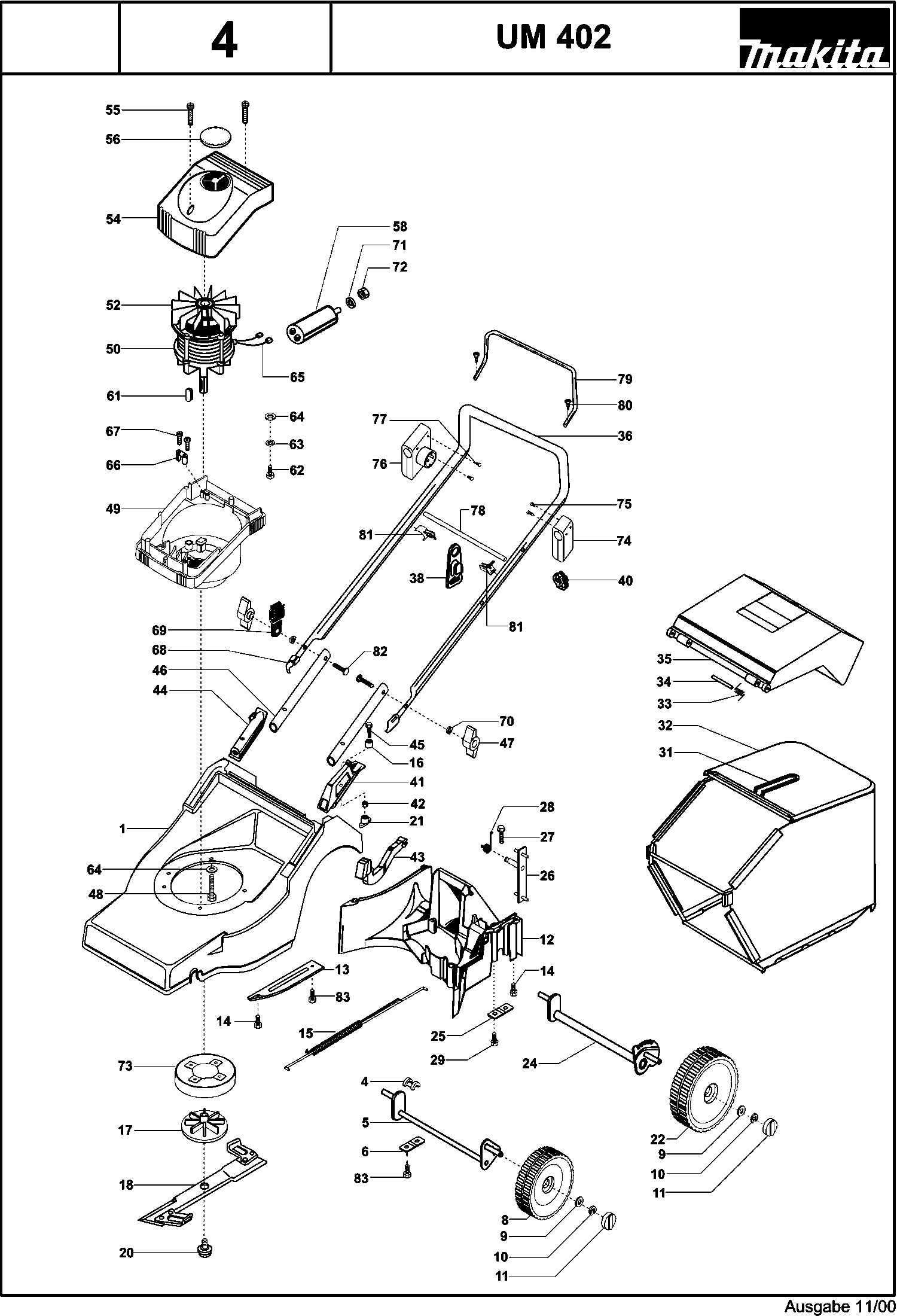 Lista de las piezas de repuesto de Makita UM402
