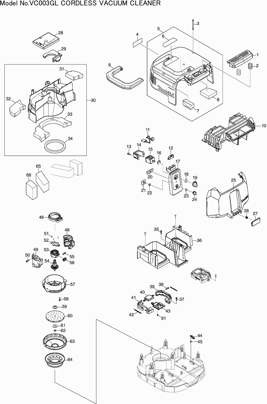 Lista de las piezas de repuesto de Makita VC003GL