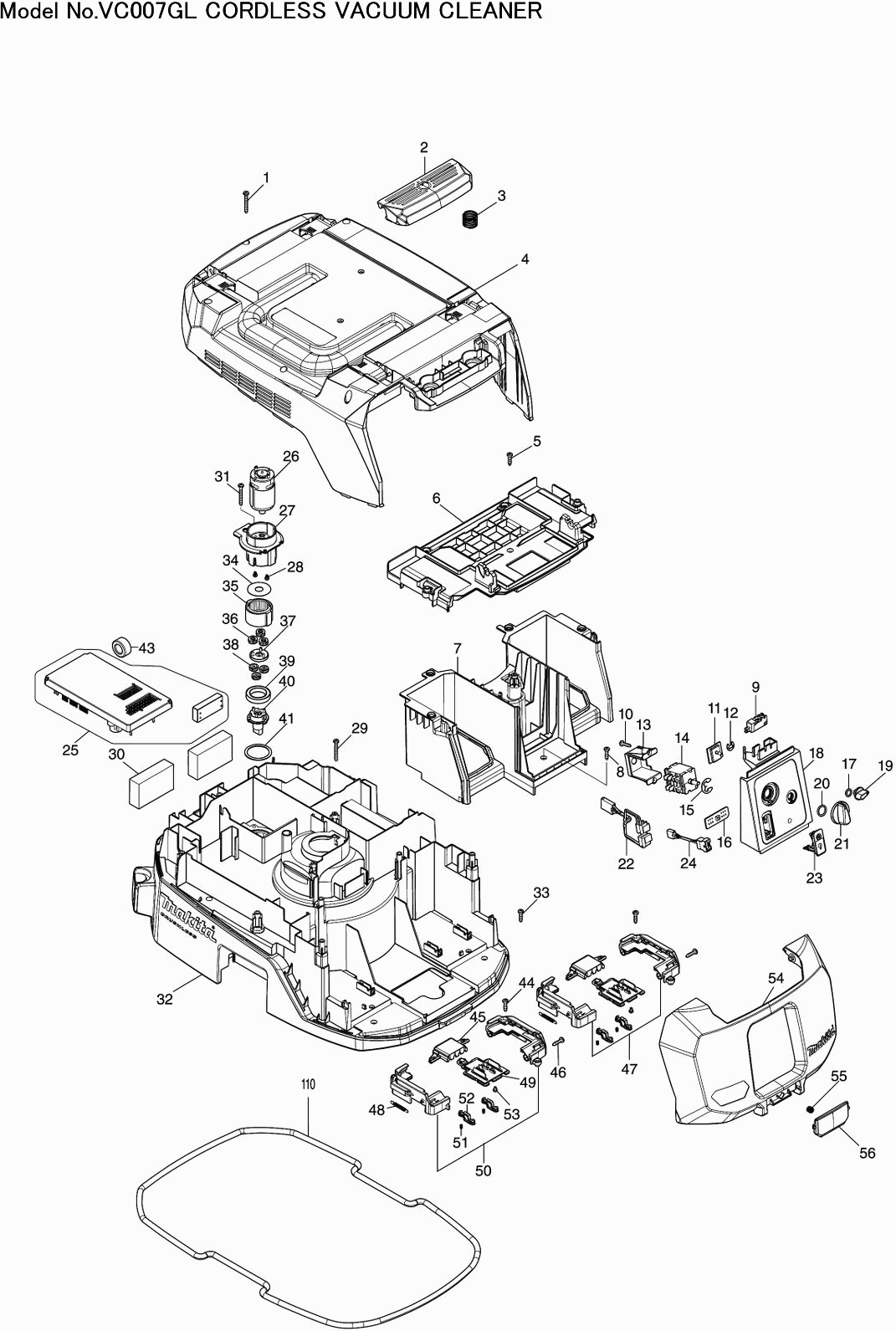 Lista de las piezas de repuesto de Makita VC007GL
