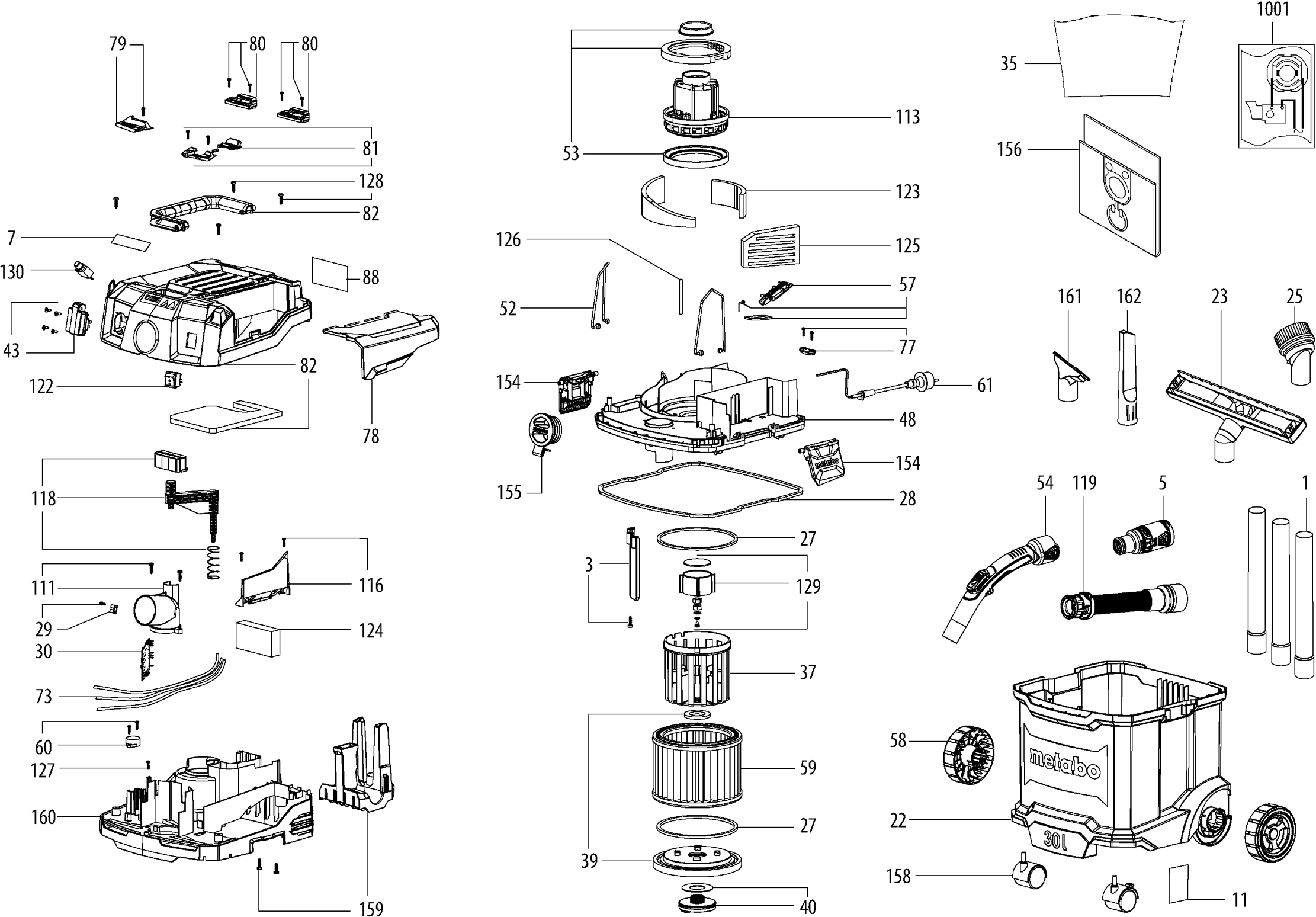 Lista de las piezas de repuesto de Metabo 02088000 ( ASA30HPC )