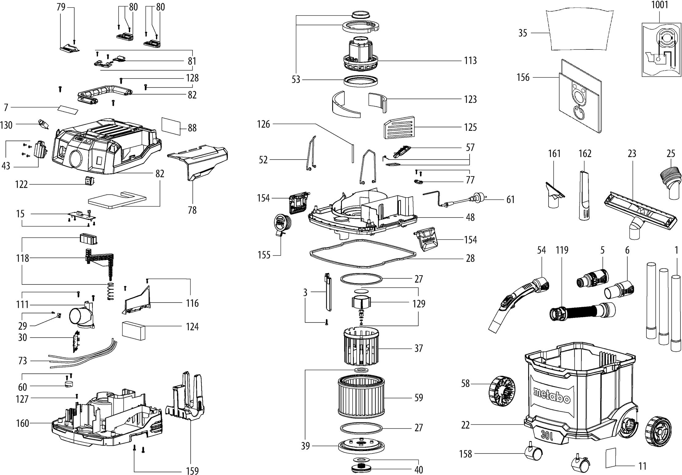 Lista de las piezas de repuesto de Metabo 02087000 ( ASA30MPC )