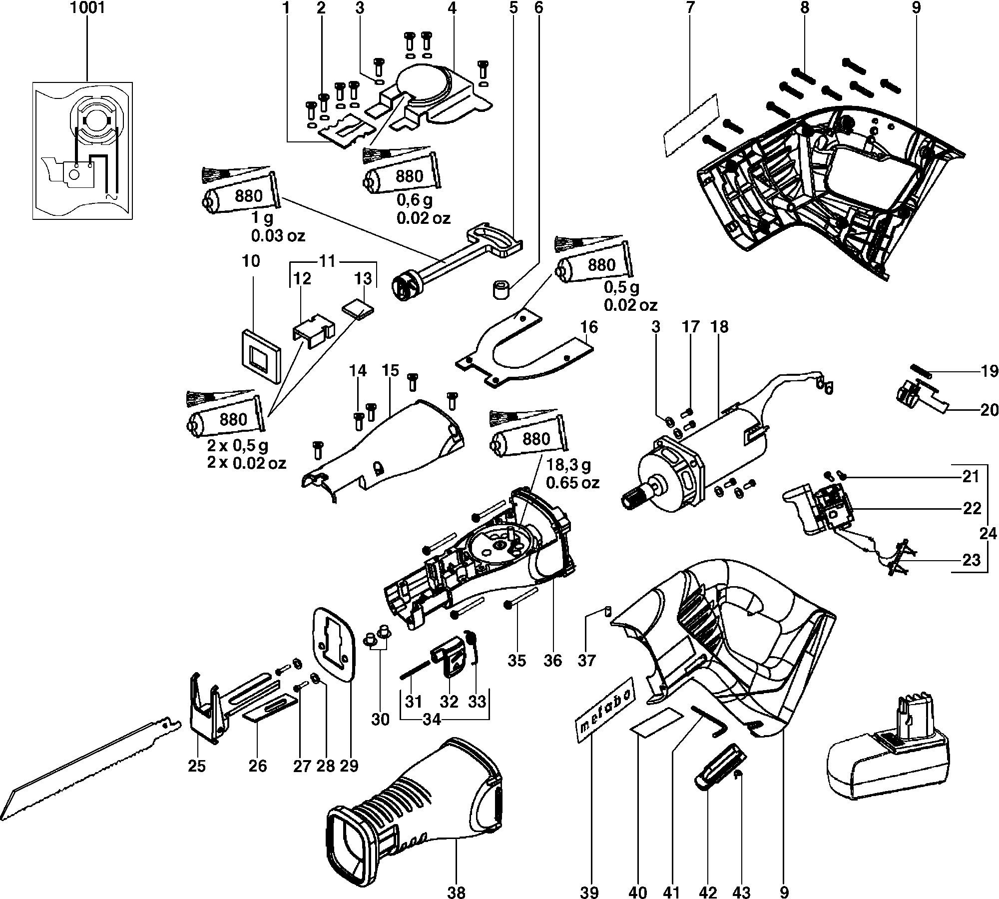 Lista de las piezas de repuesto de Metabo 02169000 ( ASE18 )