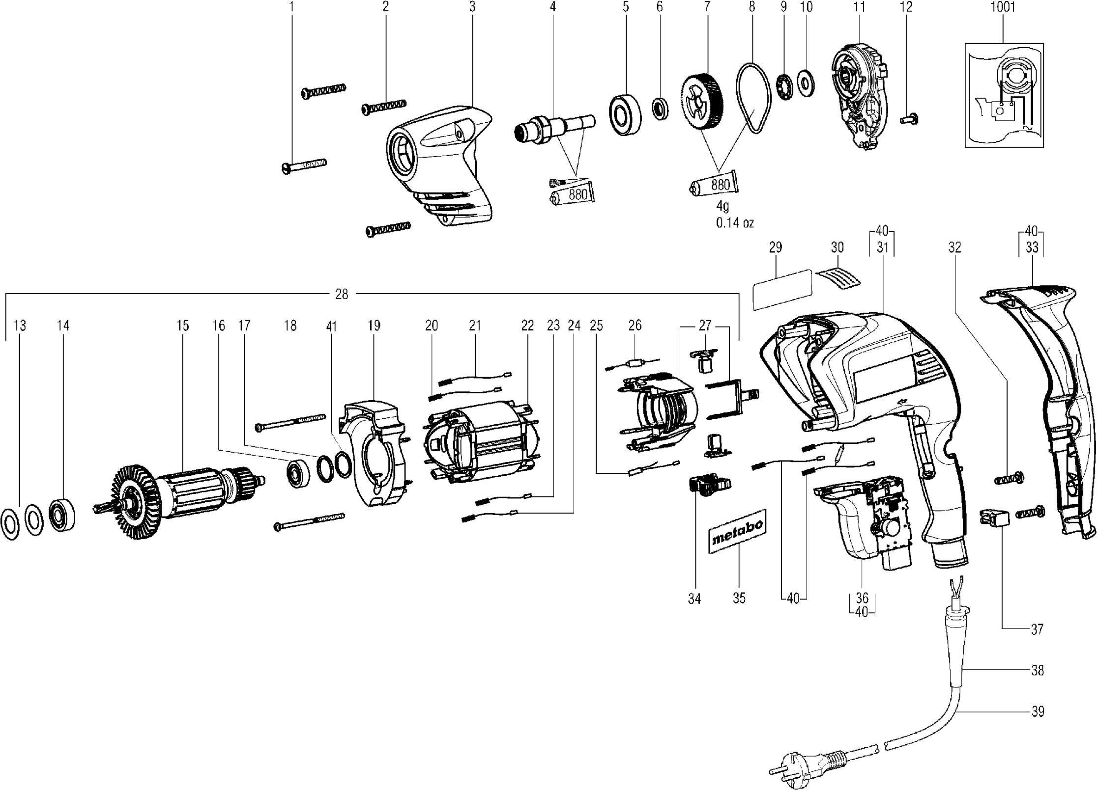Aquí encontrará todas las piezas y dibujos técnicos disponibles de 'Metabo 00555000 ( BE4010 )'. Desde aquí podrá pedir todas las piezas deseadas directamente. Para muchas piezas de repuesto, es necesario pasar un pedido al fabricante. Dependiendo de la marca, el plazo de entrega puede variar entre una y cuatro semanas. Toda la información que tenemos está en nuestro sitio web. No podremos aconsejarle sobre lo que necesita hasta que entregue la máquina para su reparación. Tenga en cuenta lo siguiente a la hora de cursar su pedido: