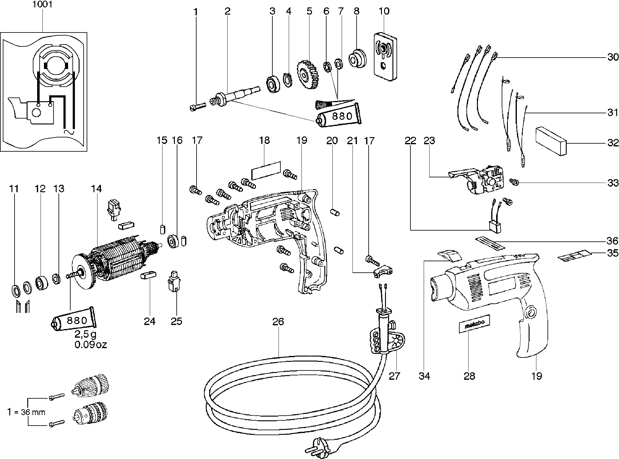 Lista de las piezas de repuesto de Metabo 00557000 ( BE560 )