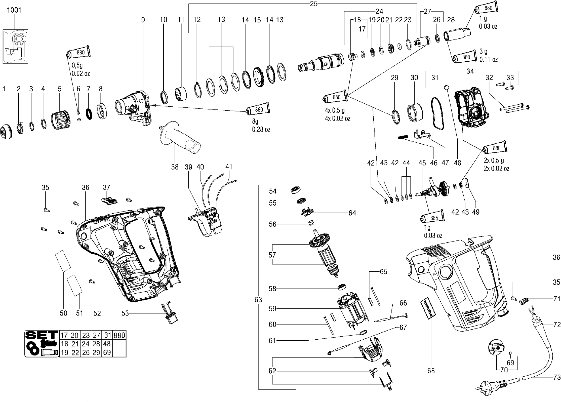 Lista de las piezas de repuesto de Metabo 00402000 ( BHE20COMPACT )