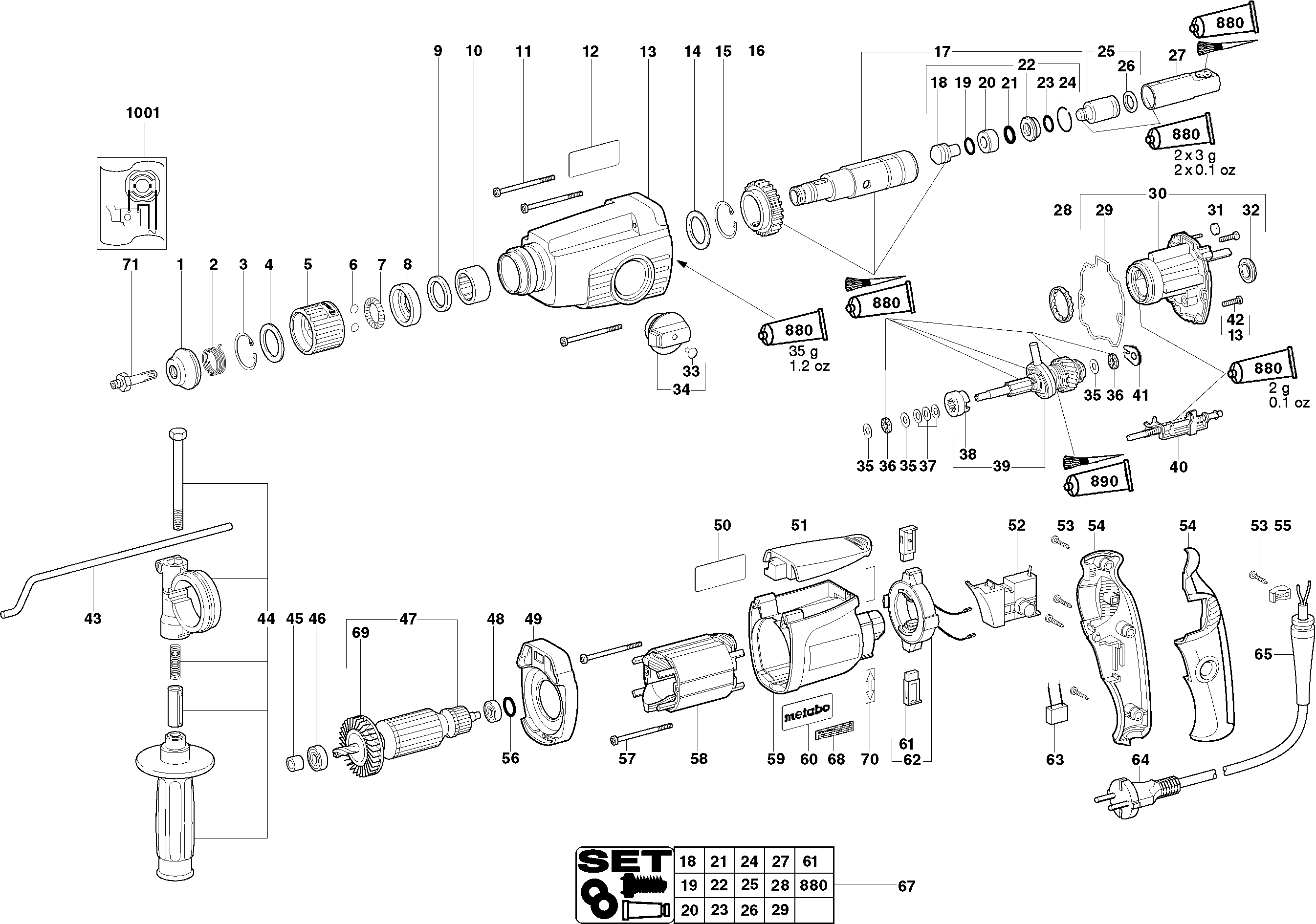 Lista de las piezas de repuesto de Metabo 00254000 ( BHE20SP )