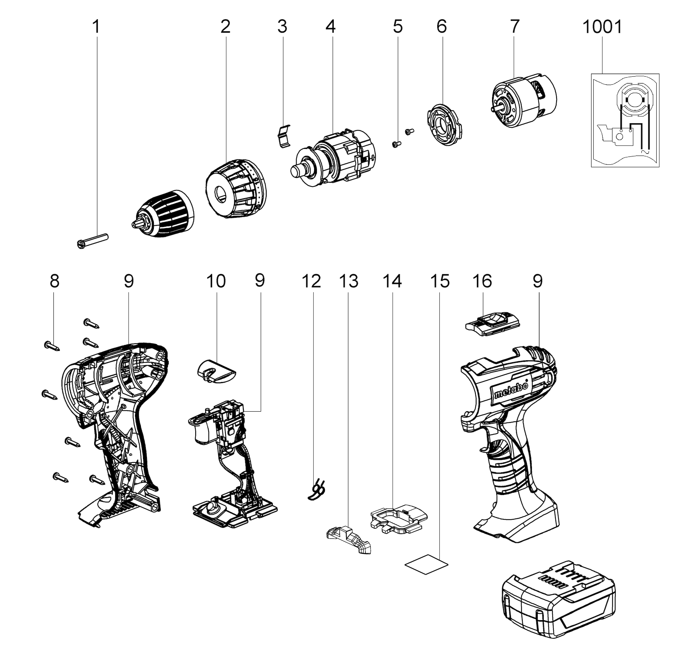 Aquí encontrará todas las piezas y dibujos técnicos disponibles de 'Metabo 02136000 ( BS18LI )'. Desde aquí podrá pedir todas las piezas deseadas directamente. Para muchas piezas de repuesto, es necesario pasar un pedido al fabricante. Dependiendo de la marca, el plazo de entrega puede variar entre una y cuatro semanas. Toda la información que tenemos está en nuestro sitio web. No podremos aconsejarle sobre lo que necesita hasta que entregue la máquina para su reparación. Tenga en cuenta lo siguiente a la hora de cursar su pedido: