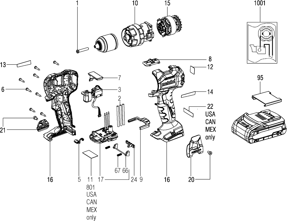 Lista de las piezas de repuesto de Metabo 02325001 ( BS18LTBL )