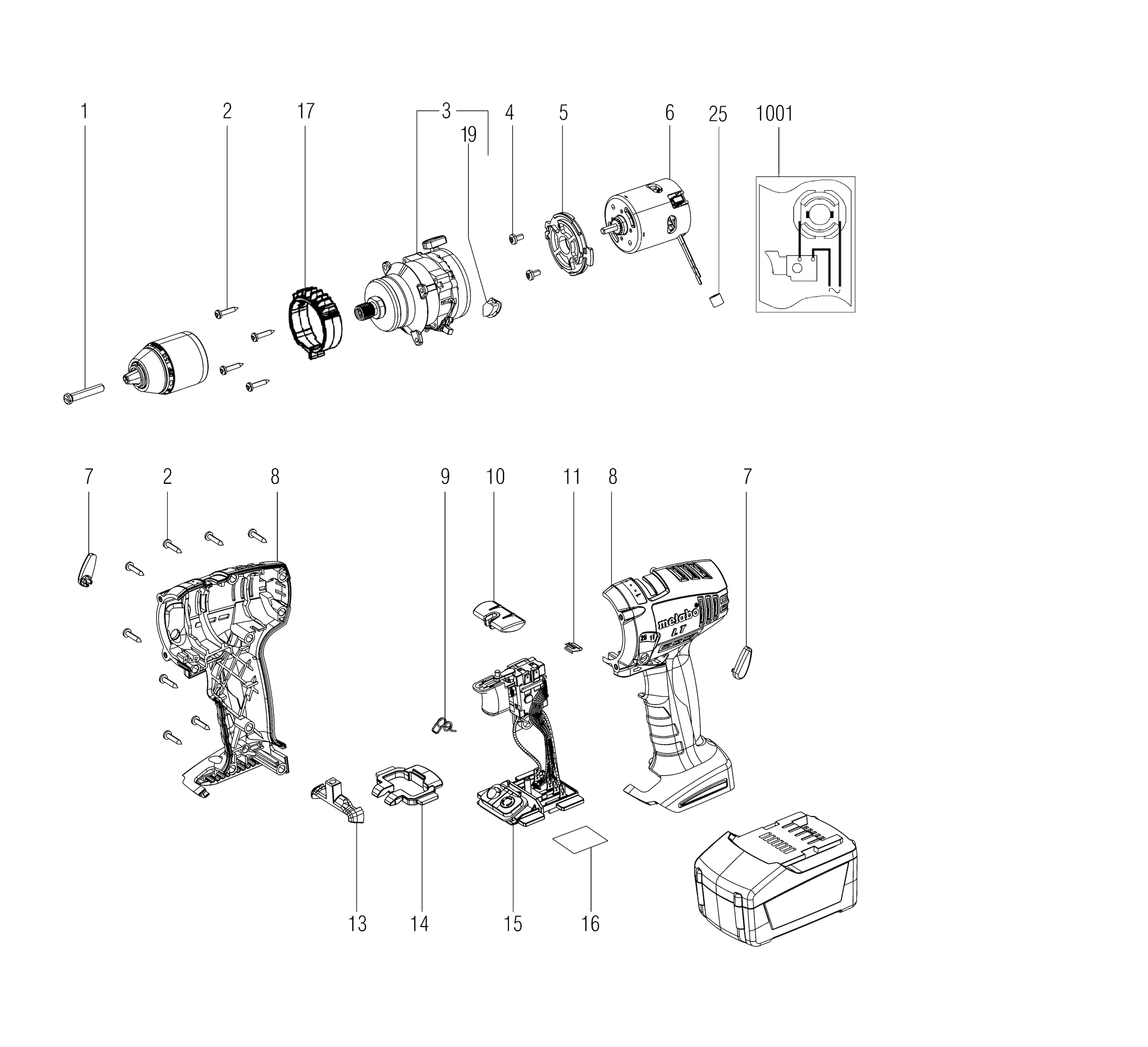 Lista de las piezas de repuesto de Metabo 02139001 ( BS18LTIMPULS )