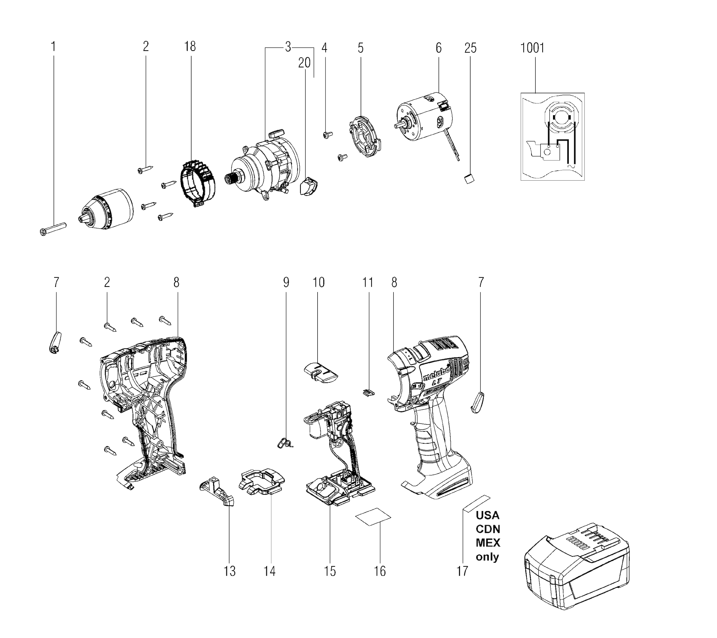 Aquí encontrará todas las piezas y dibujos técnicos disponibles de 'Metabo 02138001 ( BS18LT )'. Desde aquí podrá pedir todas las piezas deseadas directamente. Para muchas piezas de repuesto, es necesario pasar un pedido al fabricante. Dependiendo de la marca, el plazo de entrega puede variar entre una y cuatro semanas. Toda la información que tenemos está en nuestro sitio web. No podremos aconsejarle sobre lo que necesita hasta que entregue la máquina para su reparación. Tenga en cuenta lo siguiente a la hora de cursar su pedido: