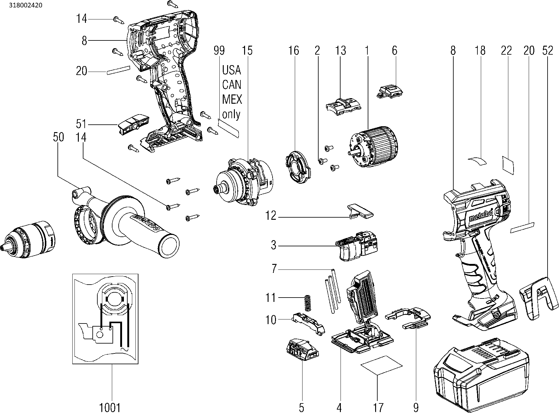 Aquí encontrará todas las piezas y dibujos técnicos disponibles de 'Metabo 02197000 ( BS18LTXBLQUICK )'. Desde aquí podrá pedir todas las piezas deseadas directamente. Para muchas piezas de repuesto, es necesario pasar un pedido al fabricante. Dependiendo de la marca, el plazo de entrega puede variar entre una y cuatro semanas. Toda la información que tenemos está en nuestro sitio web. No podremos aconsejarle sobre lo que necesita hasta que entregue la máquina para su reparación. Tenga en cuenta lo siguiente a la hora de cursar su pedido: