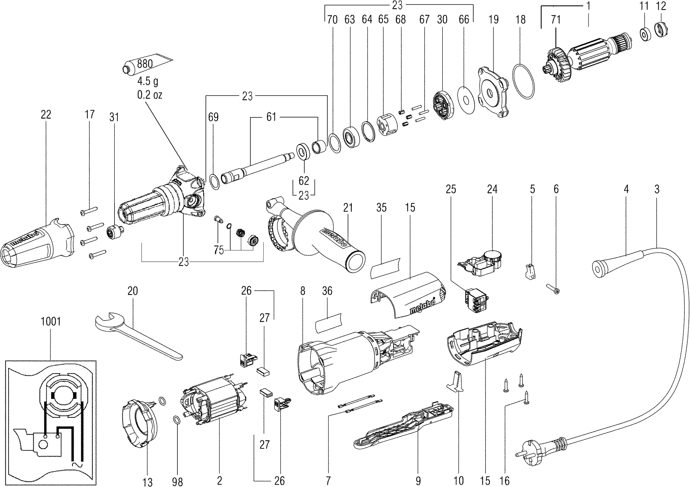 Lista de las piezas de repuesto de Metabo 00627001 ( GEP950GPLUS )