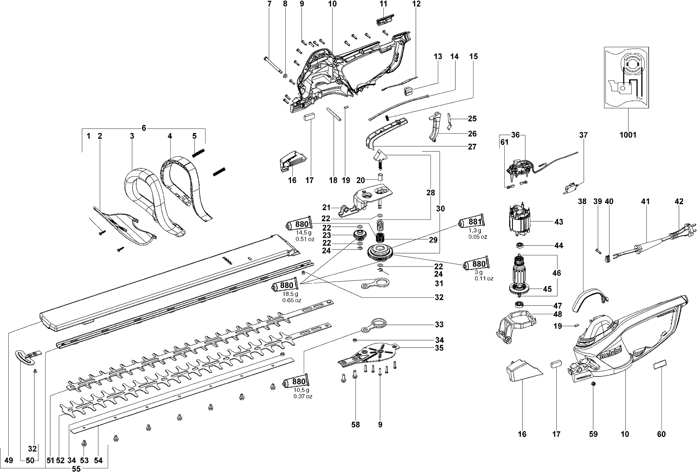 Aquí encontrará todas las piezas y dibujos técnicos disponibles de 'Metabo 08875001 ( HS8875 )'. Desde aquí podrá pedir todas las piezas deseadas directamente. Para muchas piezas de repuesto, es necesario pasar un pedido al fabricante. Dependiendo de la marca, el plazo de entrega puede variar entre una y cuatro semanas. Toda la información que tenemos está en nuestro sitio web. No podremos aconsejarle sobre lo que necesita hasta que entregue la máquina para su reparación. Tenga en cuenta lo siguiente a la hora de cursar su pedido: