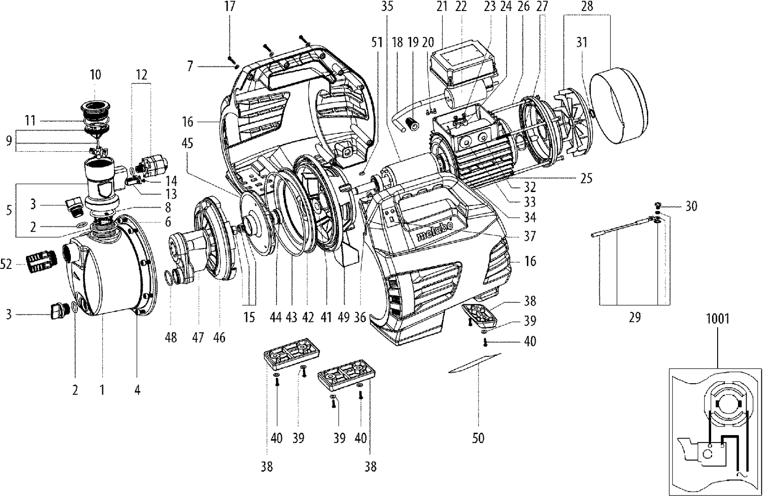 Lista de las piezas de repuesto de Metabo 00978000 ( HWA3500INOX )