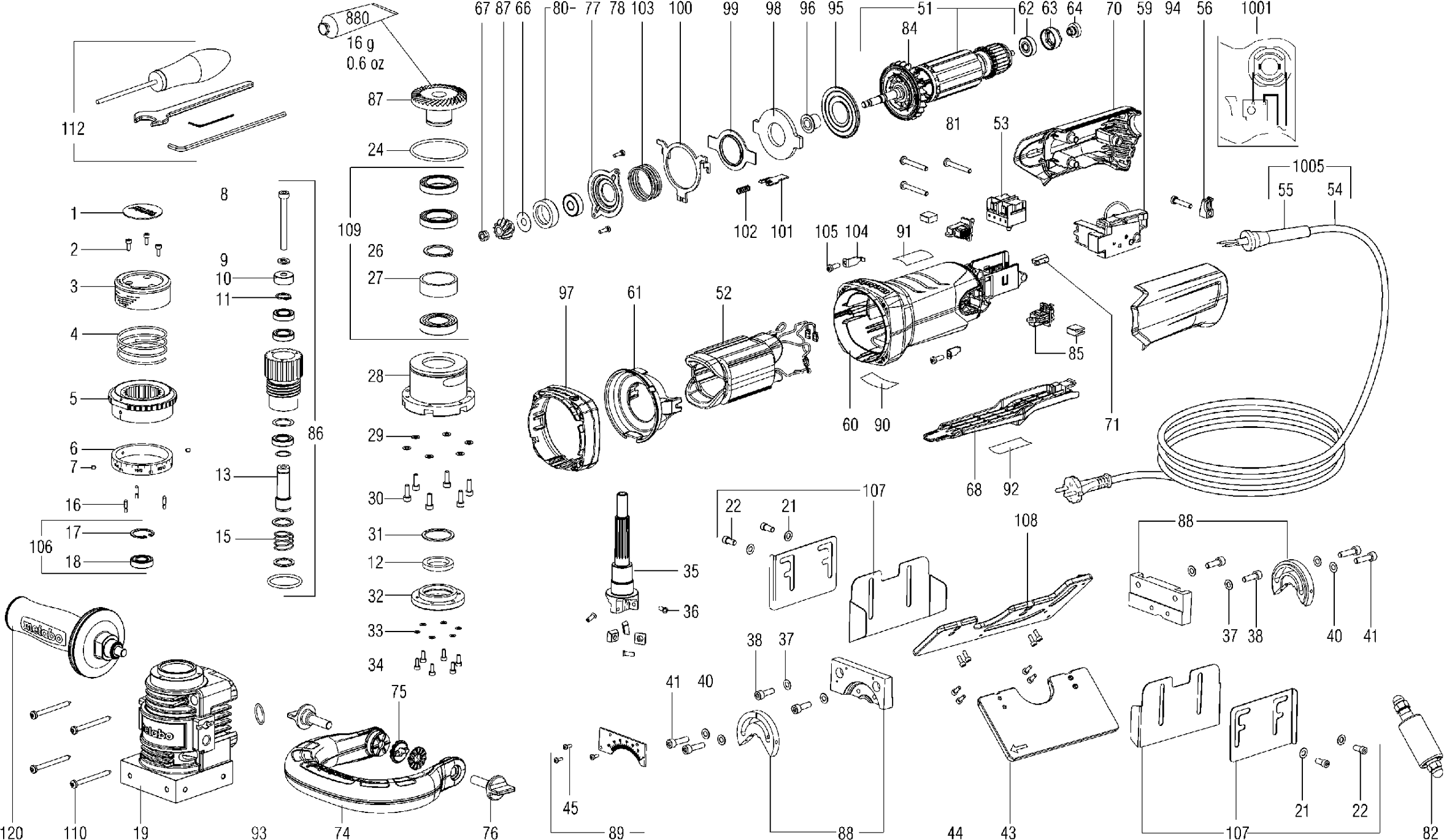 Lista de las piezas de repuesto de Metabo 01755001 ( KFMPB15-10F )