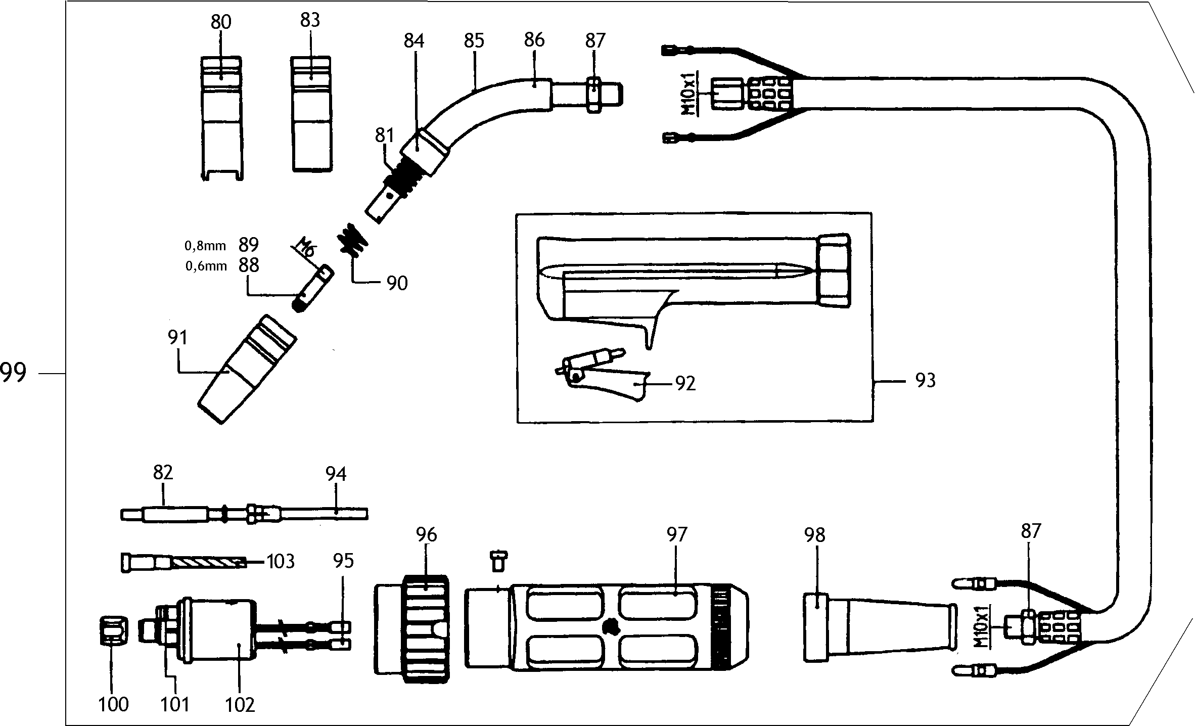Lista de las piezas de repuesto de Metabo 0021031650-10 ( MIG-MAG165SP )