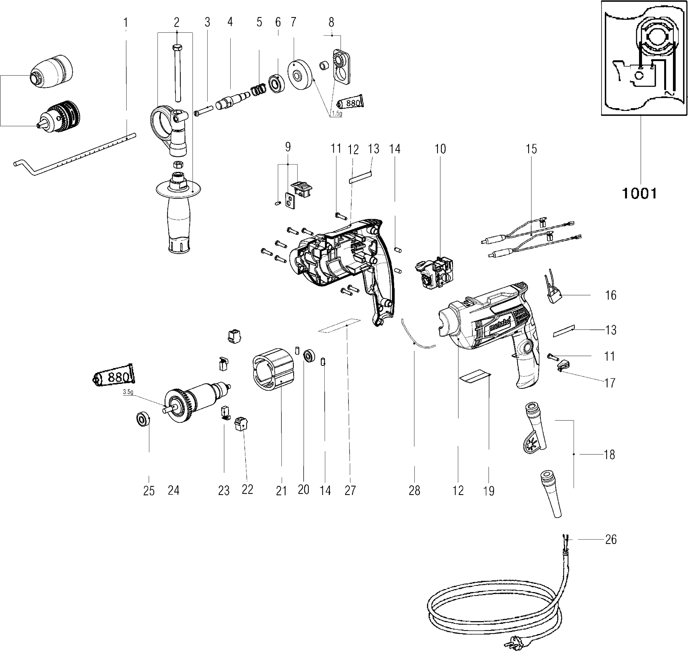 Lista de las piezas de repuesto de Metabo 00671000 ( SBE650 )