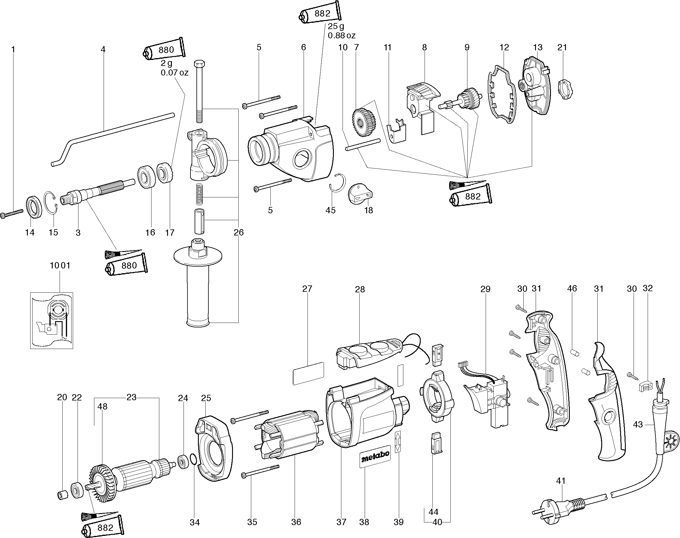 Aquí encontrará todas las piezas y dibujos técnicos disponibles de 'Metabo 20085000 ( SBE85 )'. Desde aquí podrá pedir todas las piezas deseadas directamente. Para muchas piezas de repuesto, es necesario pasar un pedido al fabricante. Dependiendo de la marca, el plazo de entrega puede variar entre una y cuatro semanas. Toda la información que tenemos está en nuestro sitio web. No podremos aconsejarle sobre lo que necesita hasta que entregue la máquina para su reparación. Tenga en cuenta lo siguiente a la hora de cursar su pedido: