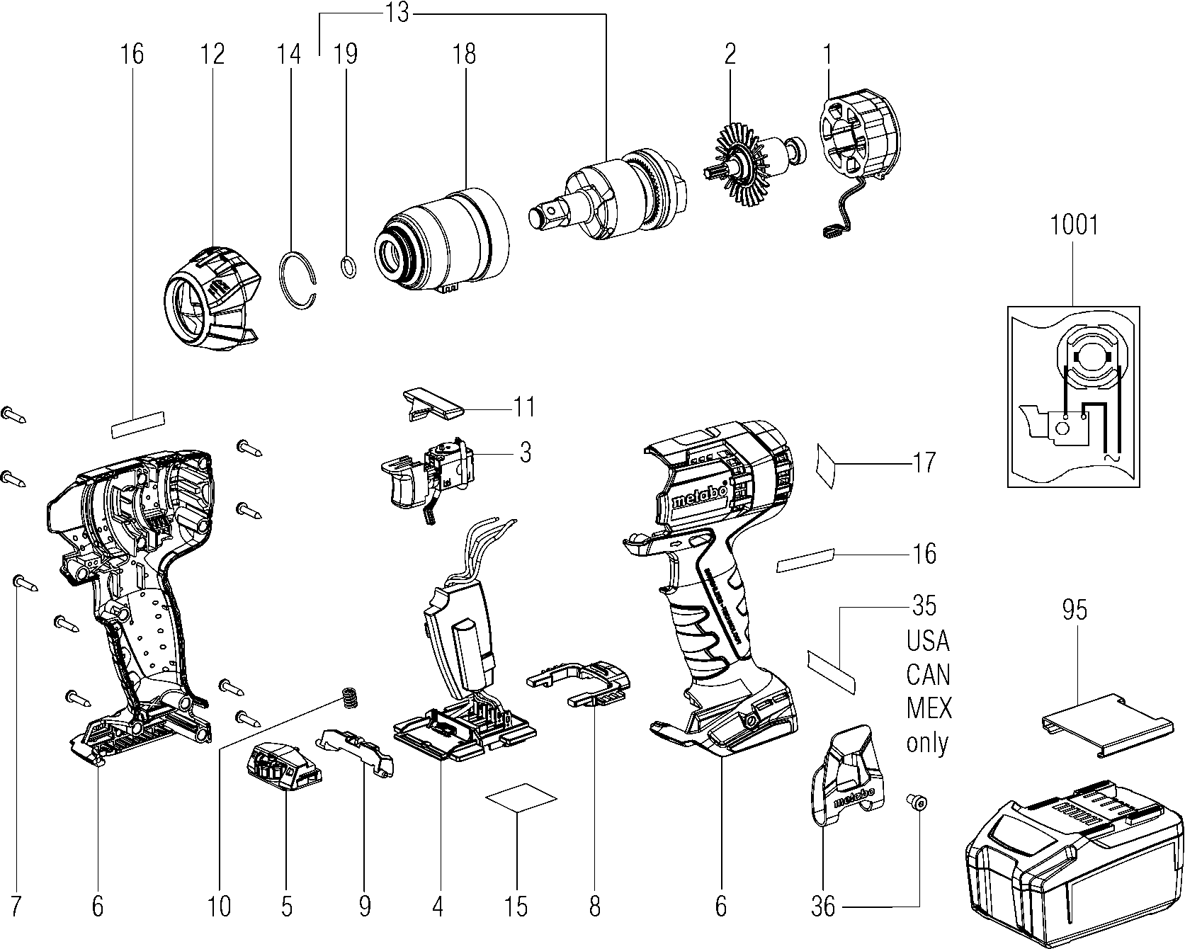 Lista de las piezas de repuesto de Metabo 02395000 ( SSW18LTX300BL )