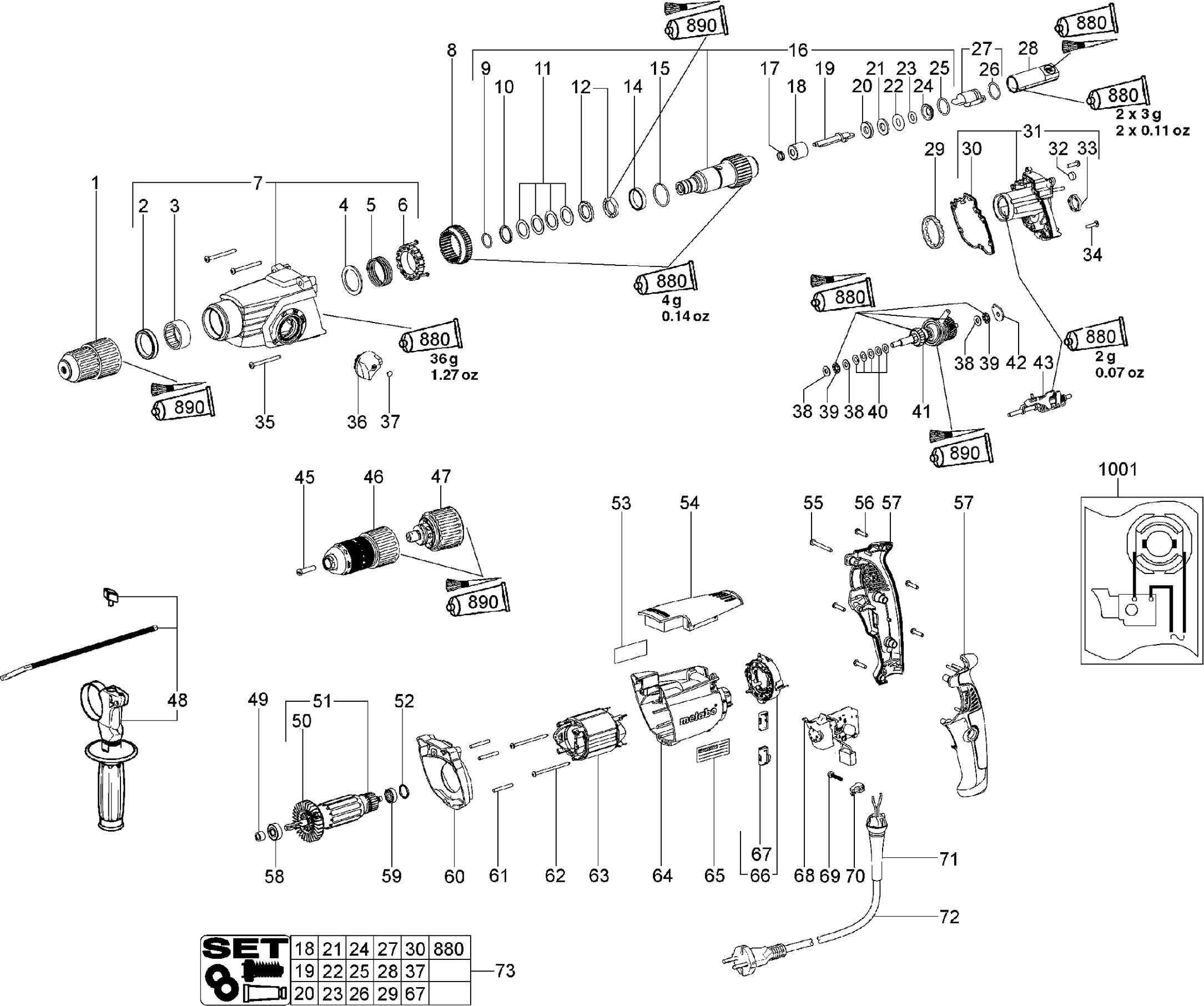 Dibujo técnico de los/las Metabo 00696000 ( UHE2450MULTI )