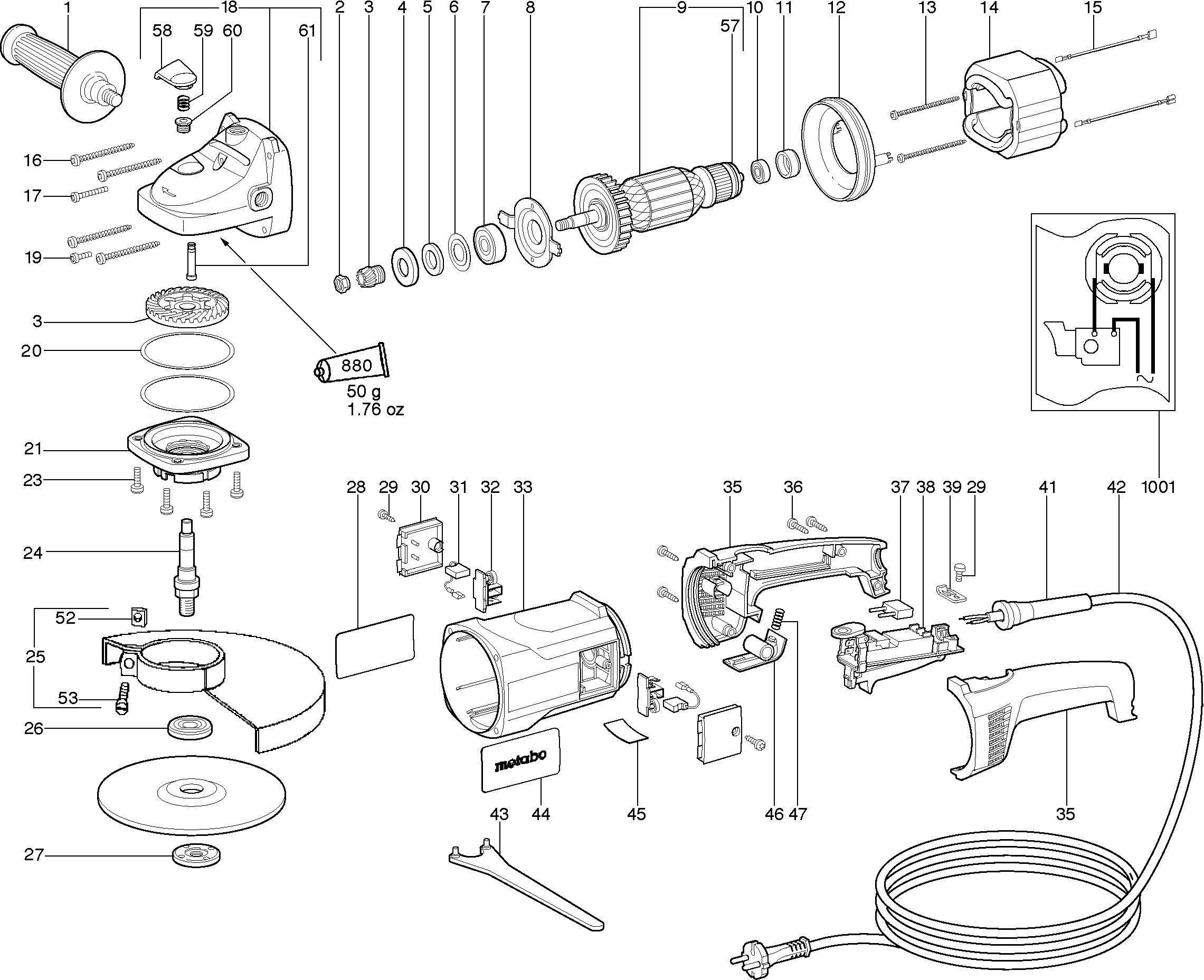 Aquí encontrará todas las piezas y dibujos técnicos disponibles de 'Metabo 06404000 ( W20-230SP )'. Desde aquí podrá pedir todas las piezas deseadas directamente. Para muchas piezas de repuesto, es necesario pasar un pedido al fabricante. Dependiendo de la marca, el plazo de entrega puede variar entre una y cuatro semanas. Toda la información que tenemos está en nuestro sitio web. No podremos aconsejarle sobre lo que necesita hasta que entregue la máquina para su reparación. Tenga en cuenta lo siguiente a la hora de cursar su pedido: