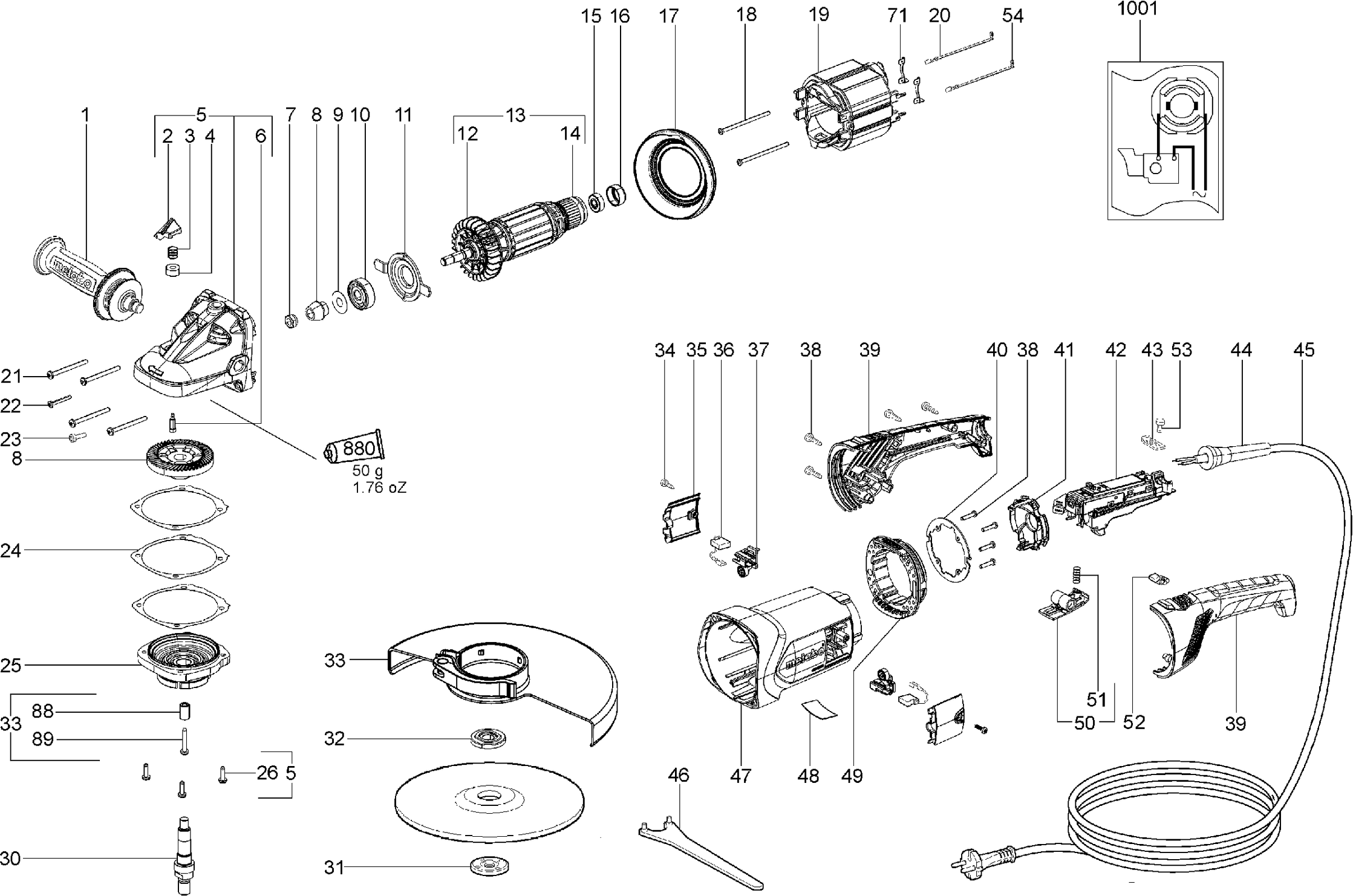 Aquí encontrará todas las piezas y dibujos técnicos disponibles de 'Metabo 06458001 ( W22-230 )'. Desde aquí podrá pedir todas las piezas deseadas directamente. Para muchas piezas de repuesto, es necesario pasar un pedido al fabricante. Dependiendo de la marca, el plazo de entrega puede variar entre una y cuatro semanas. Toda la información que tenemos está en nuestro sitio web. No podremos aconsejarle sobre lo que necesita hasta que entregue la máquina para su reparación. Tenga en cuenta lo siguiente a la hora de cursar su pedido: