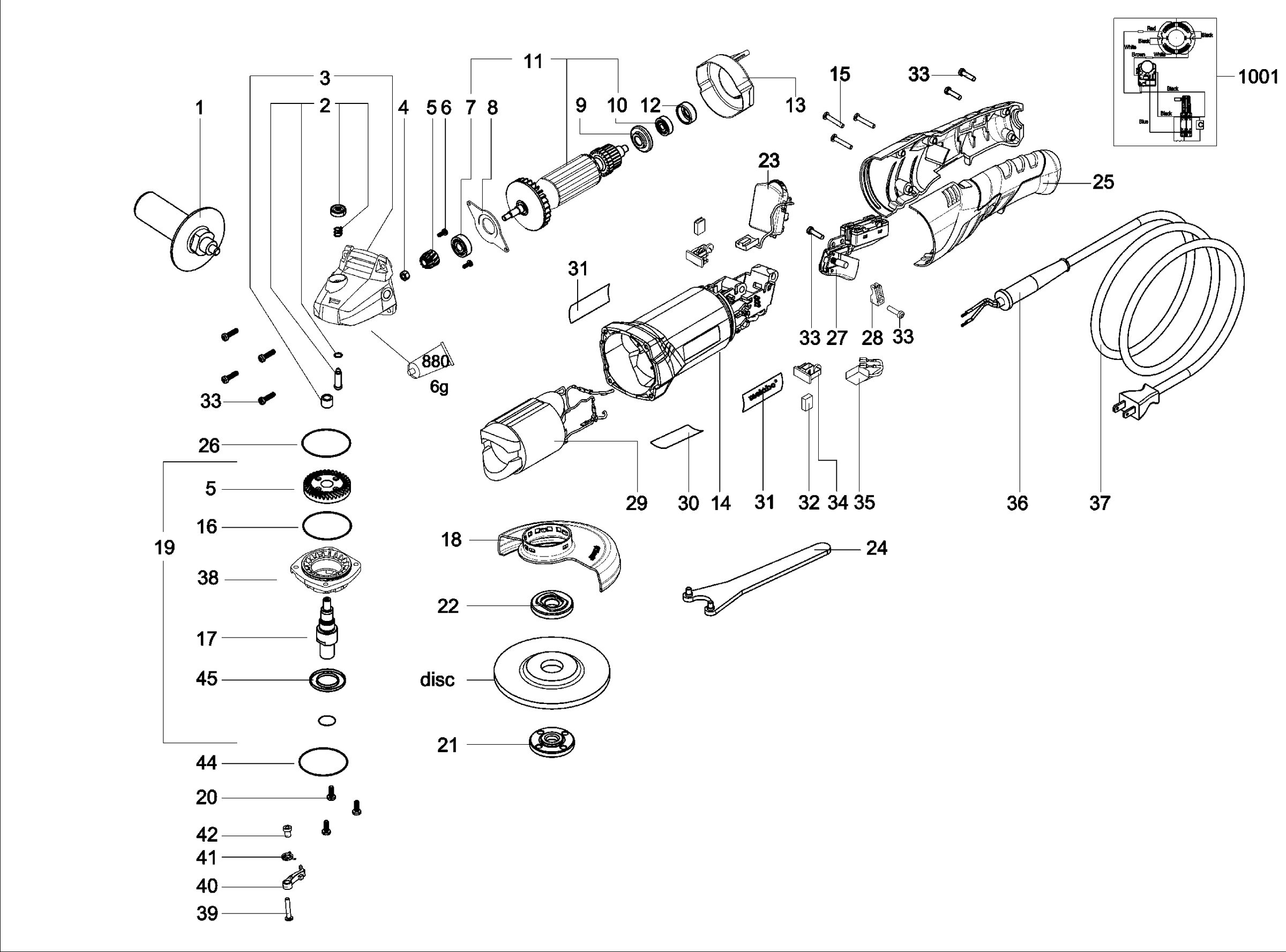 Lista de las piezas de repuesto de Metabo 01241000 ( WE1500-125RT )