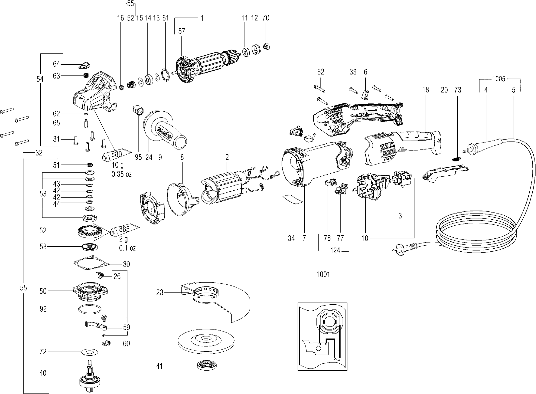 Lista de las piezas de repuesto de Metabo 01095000 ( WEA19-180QUICKRT )