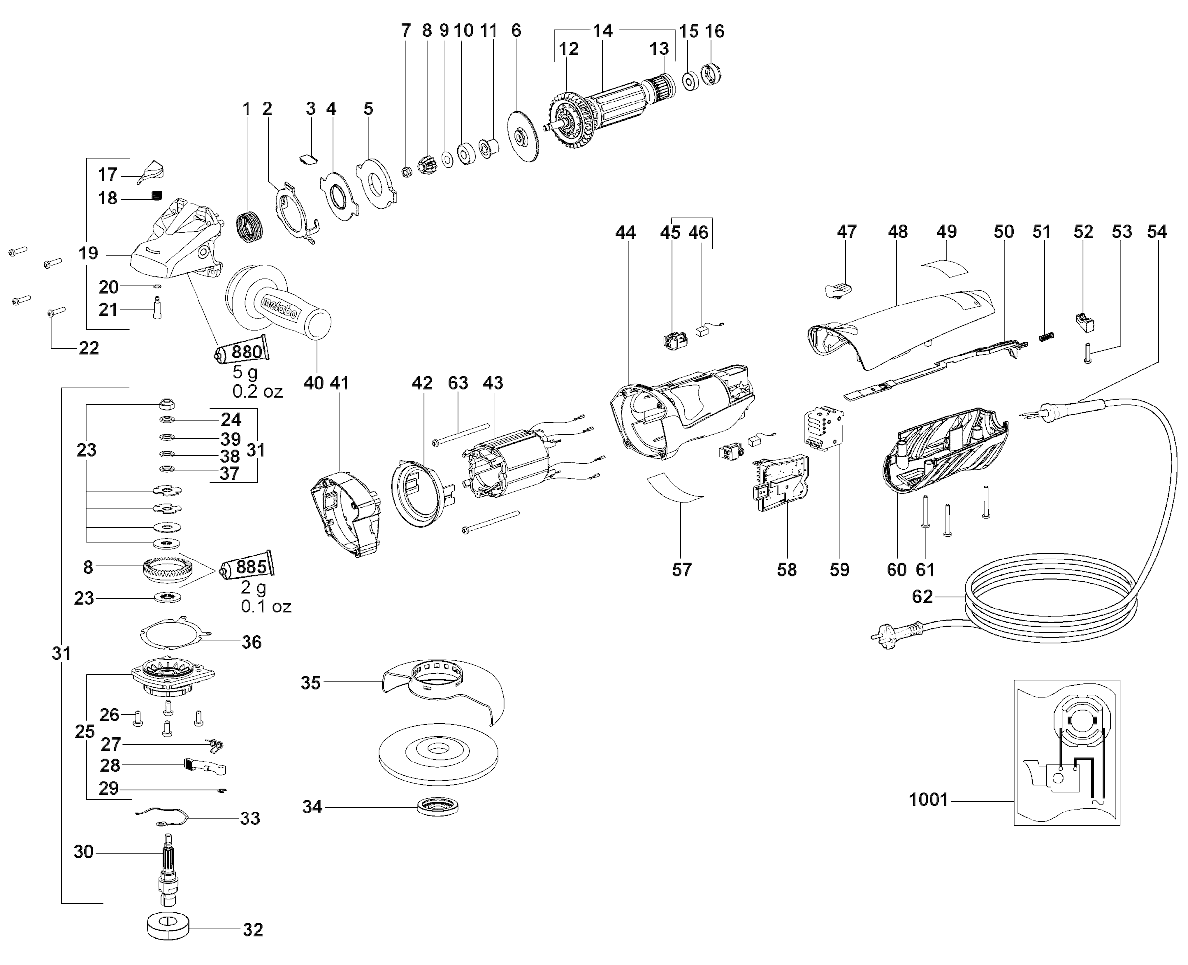 Aquí encontrará todas las piezas y dibujos técnicos disponibles de 'Metabo 01107001 ( WEBA14-125QUICK )'. Desde aquí podrá pedir todas las piezas deseadas directamente. Para muchas piezas de repuesto, es necesario pasar un pedido al fabricante. Dependiendo de la marca, el plazo de entrega puede variar entre una y cuatro semanas. Toda la información que tenemos está en nuestro sitio web. No podremos aconsejarle sobre lo que necesita hasta que entregue la máquina para su reparación. Tenga en cuenta lo siguiente a la hora de cursar su pedido: