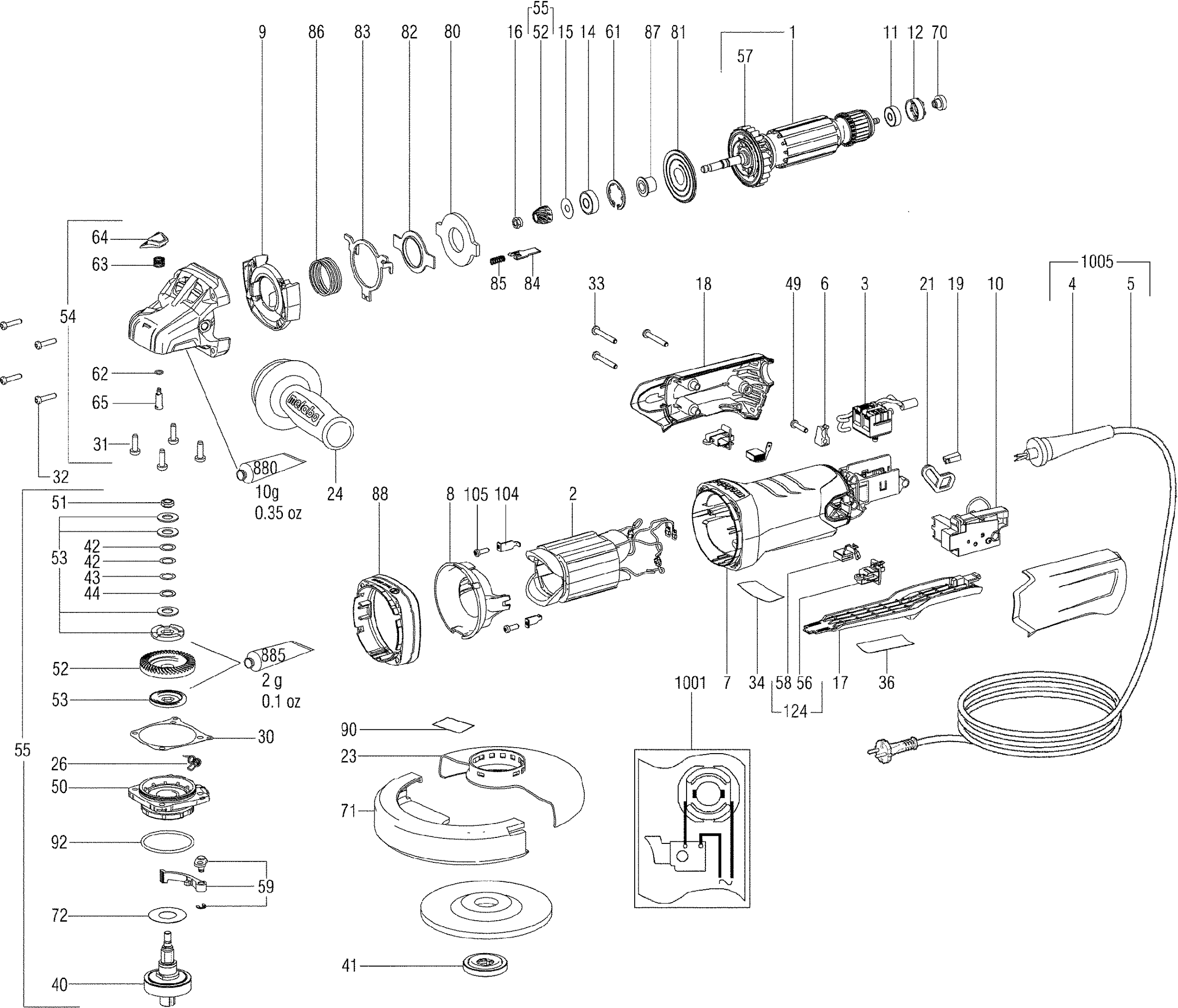 Lista de las piezas de repuesto de Metabo 00552002 ( WEPBA17-150QUICK )